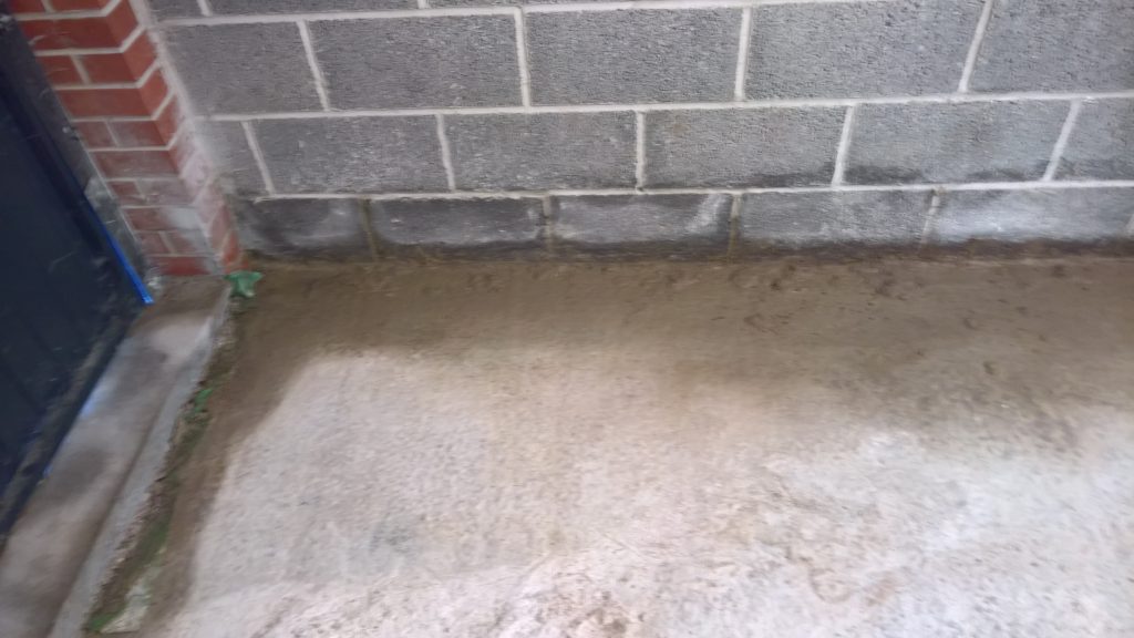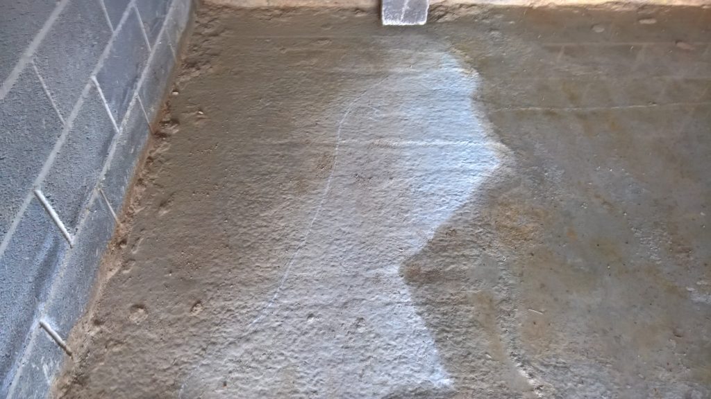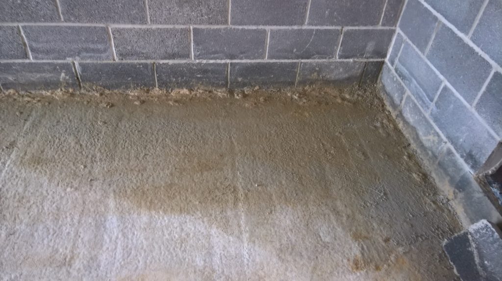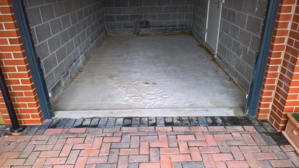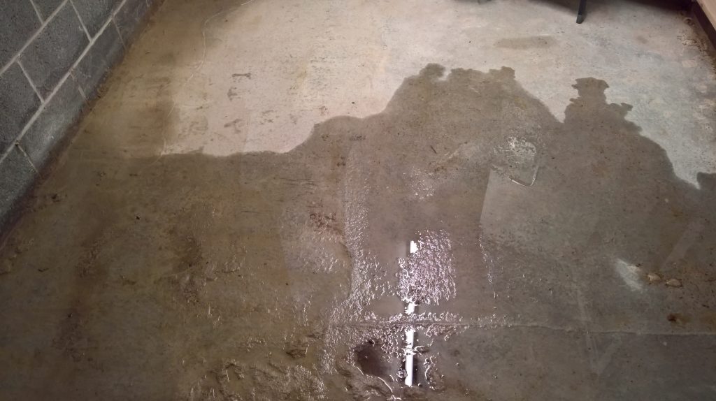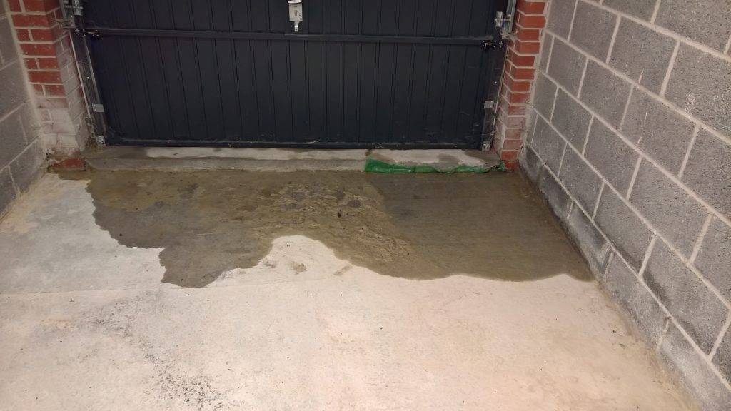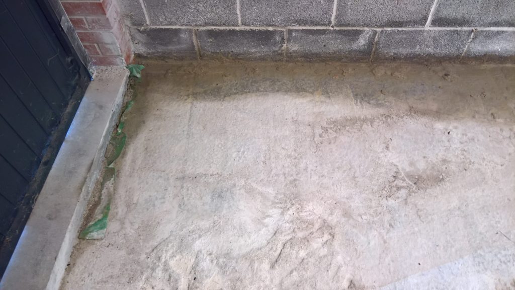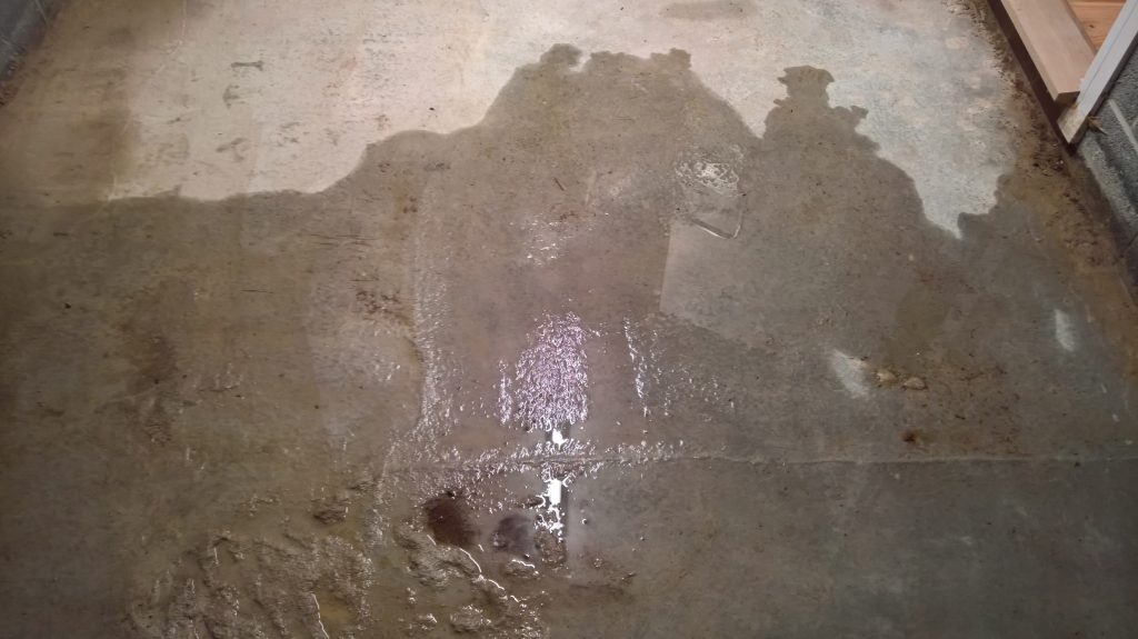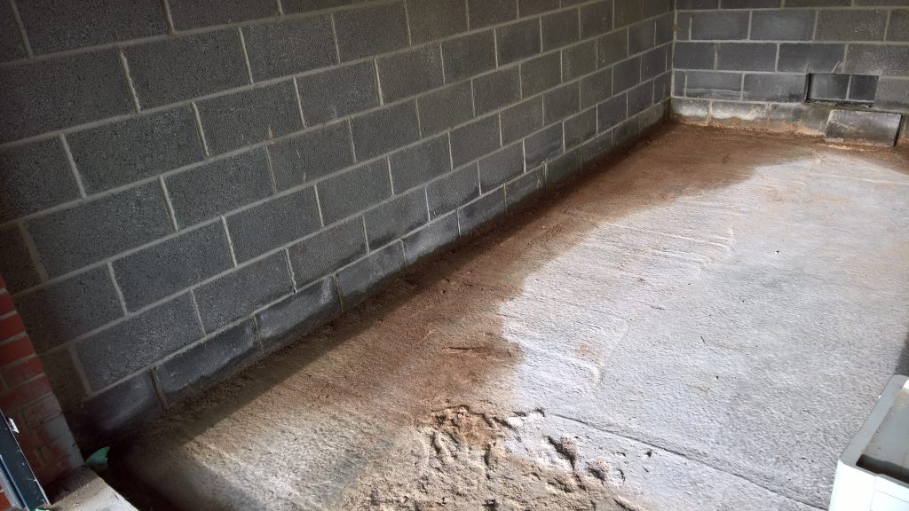 The image below illustrates what would happen without some ingress prevention. This picture was taken after only one day of showery rain. Until the screed was removed this water would have pooled under the screed surface in the garage and entered the house horizontally.