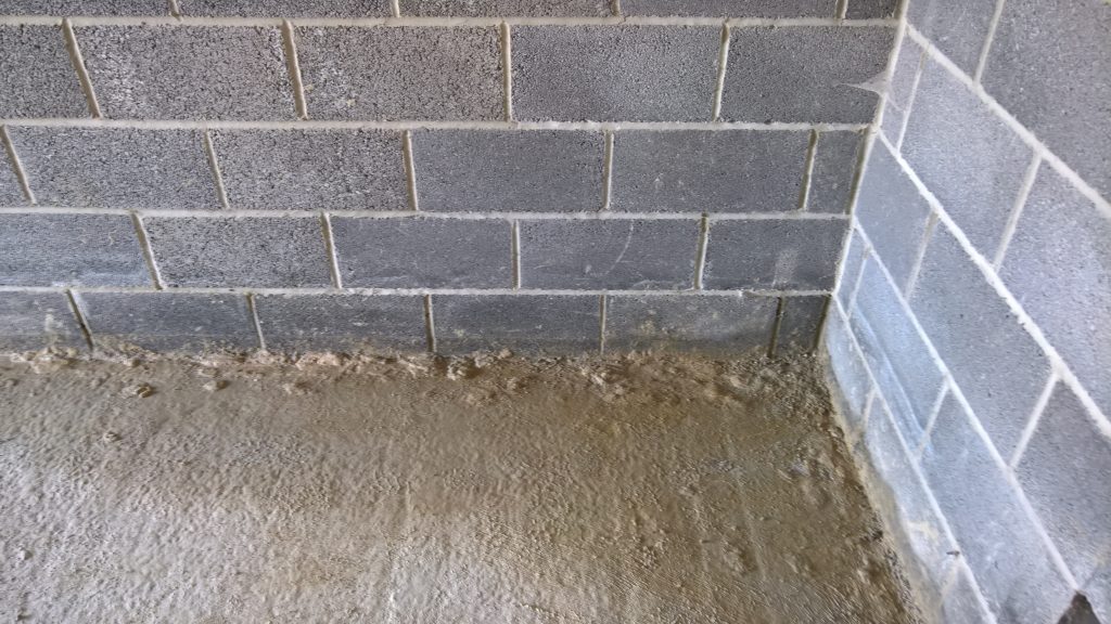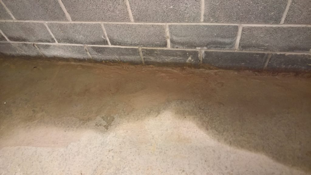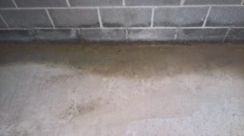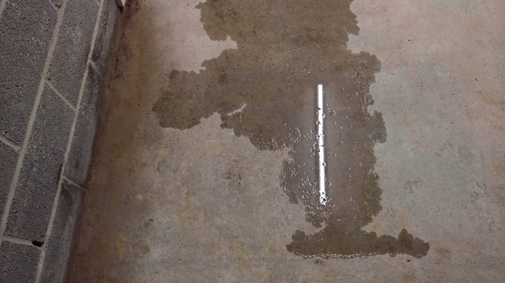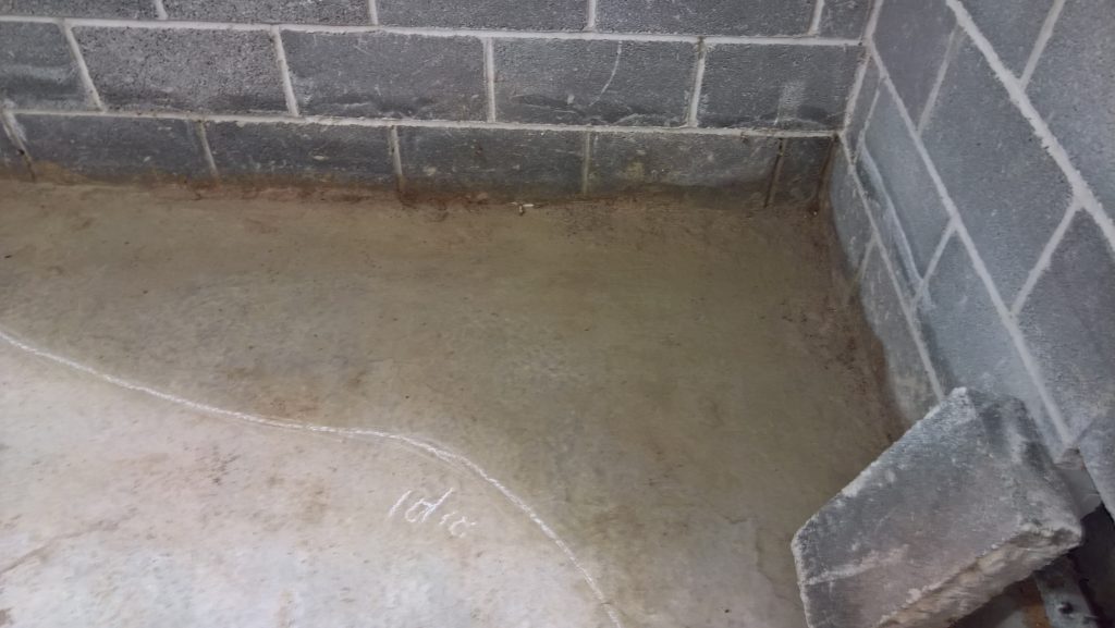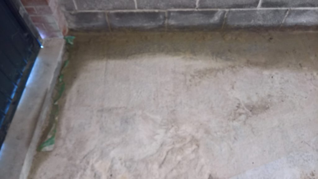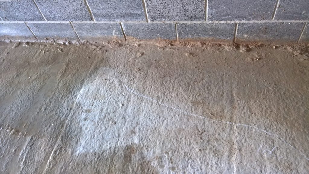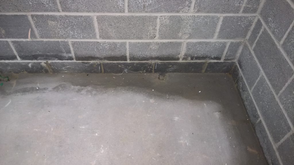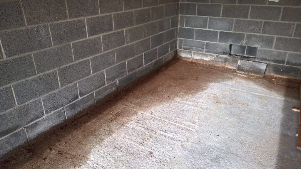 The image below illustrates what would happen without some ingress prevention. This picture was taken after only one day of showery rain. Until the screed was removed this water would have pooled under the screed surface in the garage and entered the house horizontally.