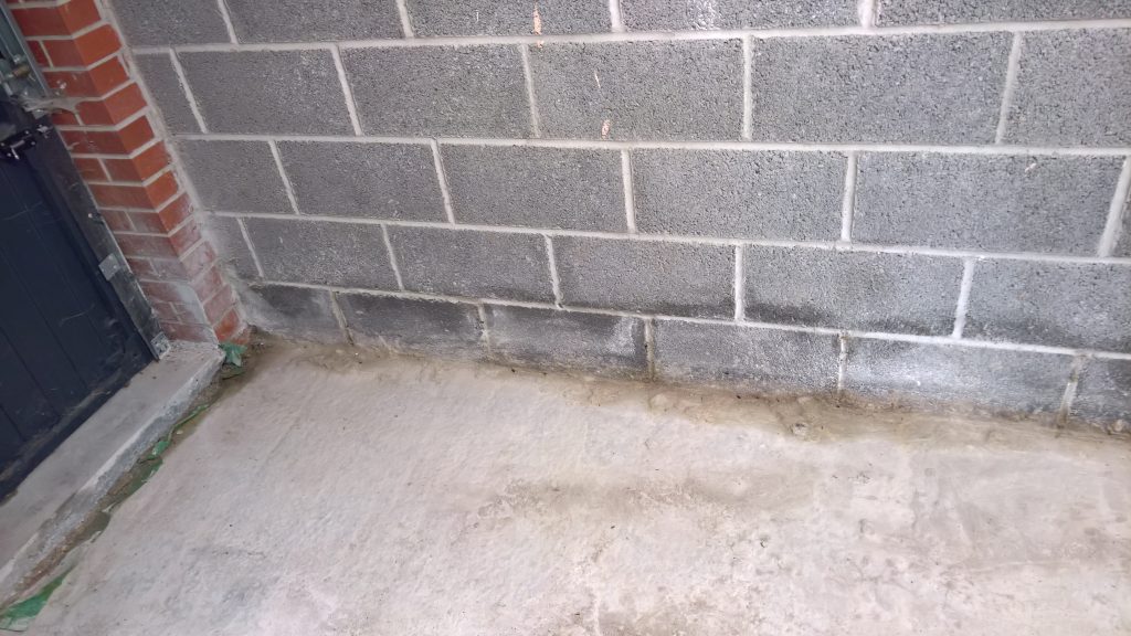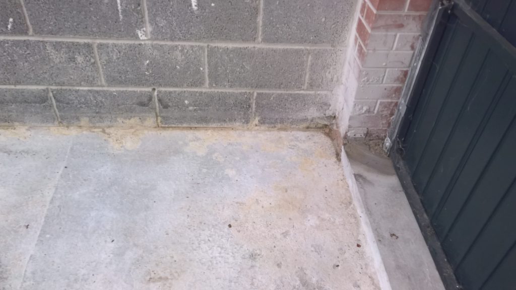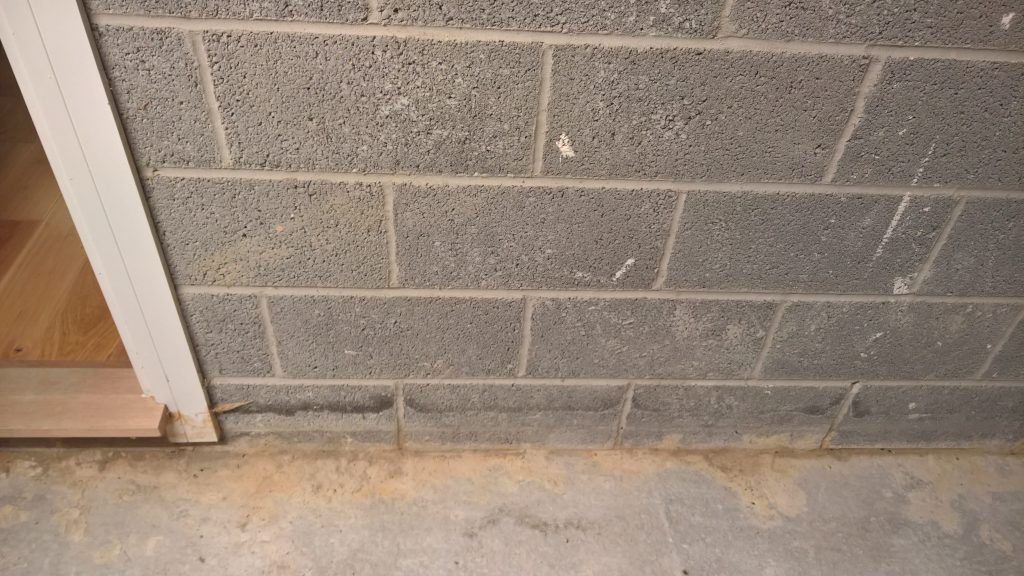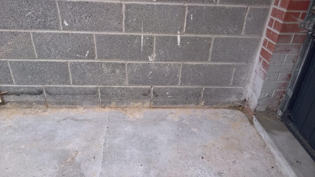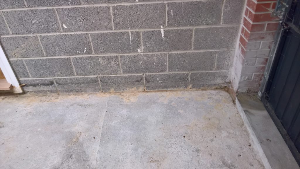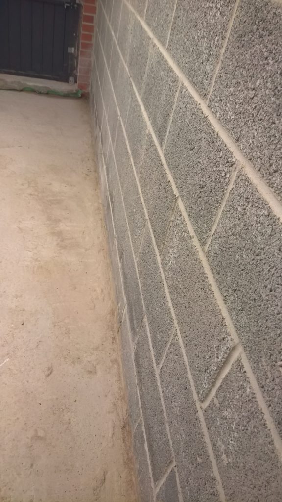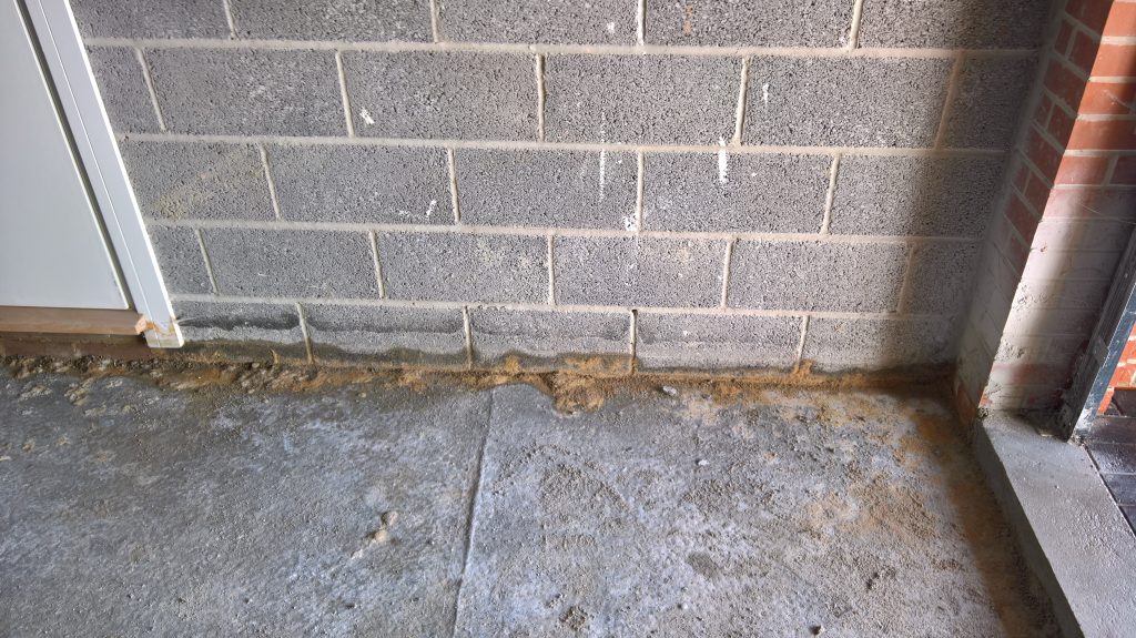 This development does not have any foundations and the blocks were laid directly onto the concrete raft with a DPC(where it actually exists) to be found one block up from the raft and block intersection highlighting a major vulnerability in the operation of the “envelope”.