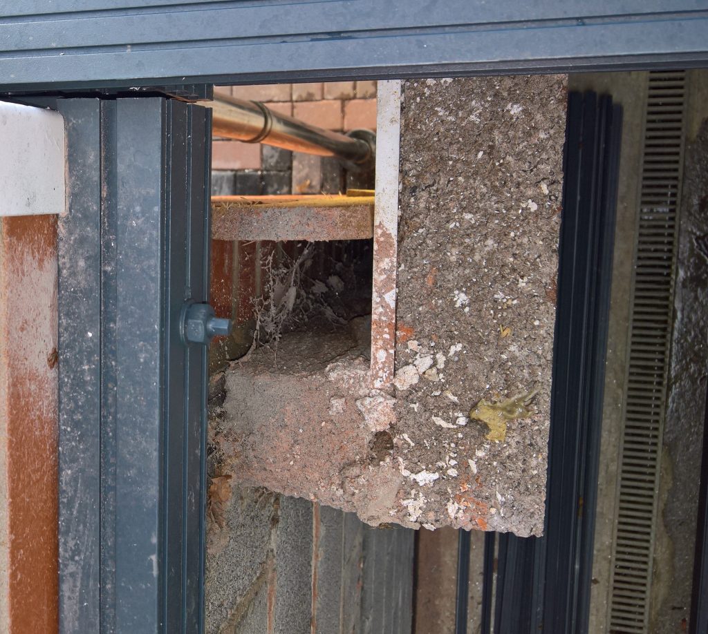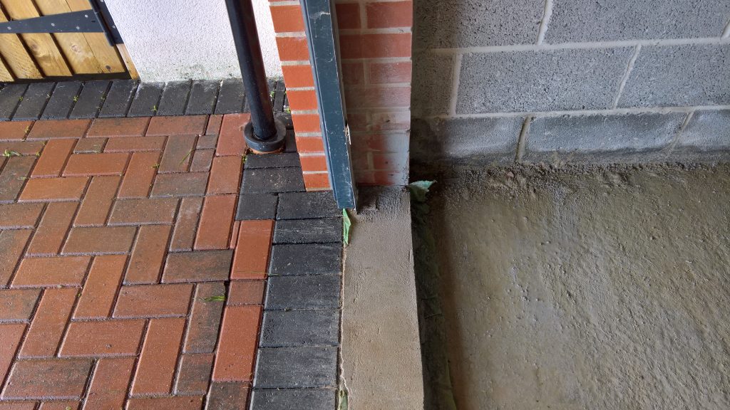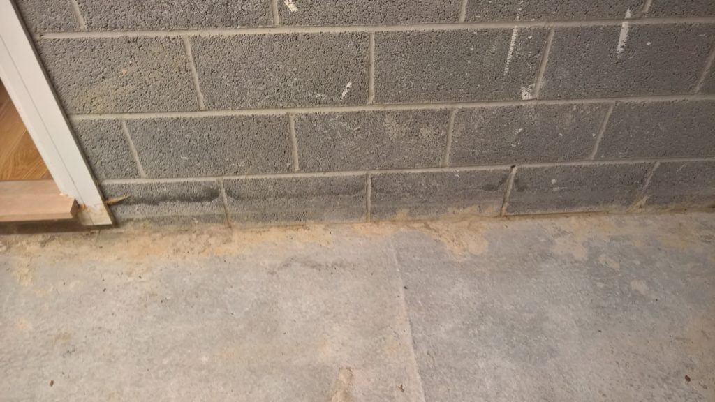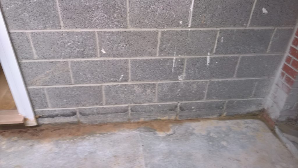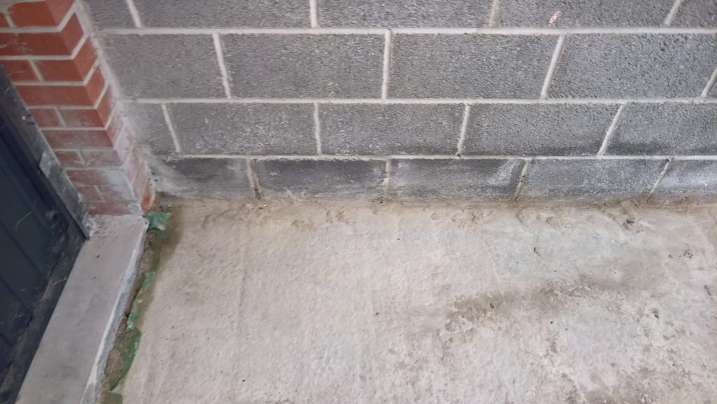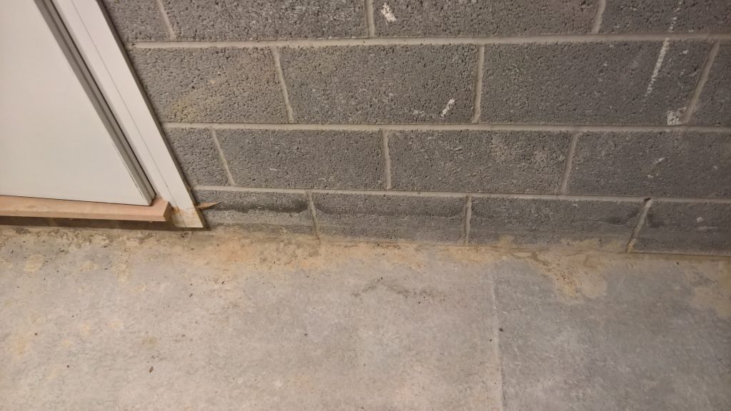 This development does not have any foundations and the blocks were laid directly onto the concrete raft with a DPC(where it actually exists) to be found one block up from the raft and block intersection highlighting a major vulnerability in the operation of the “envelope”.