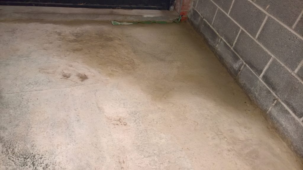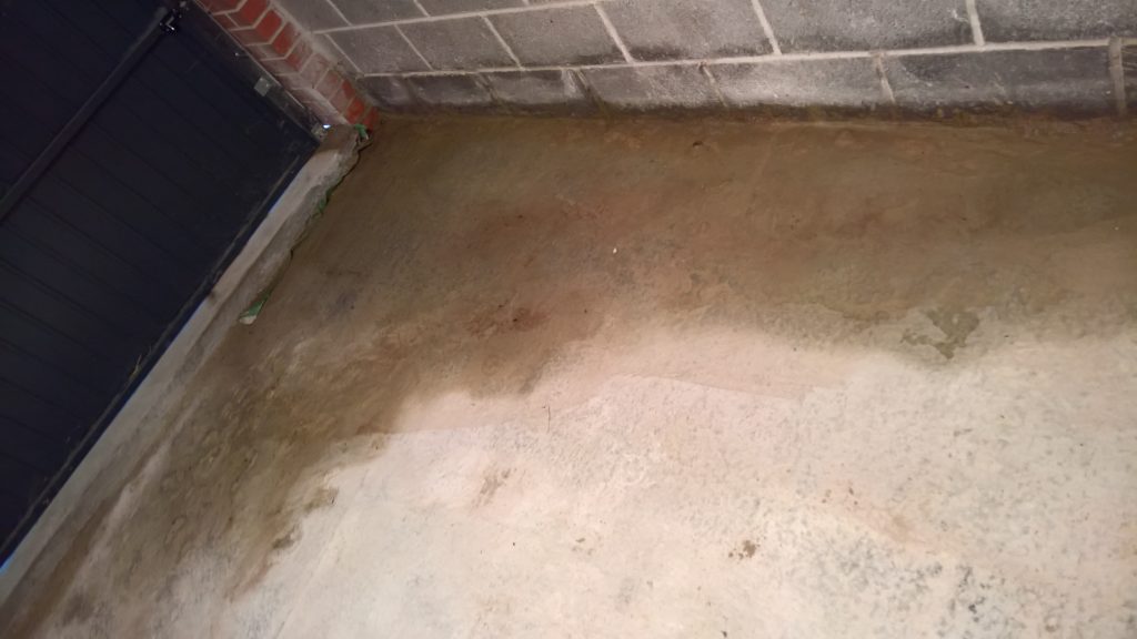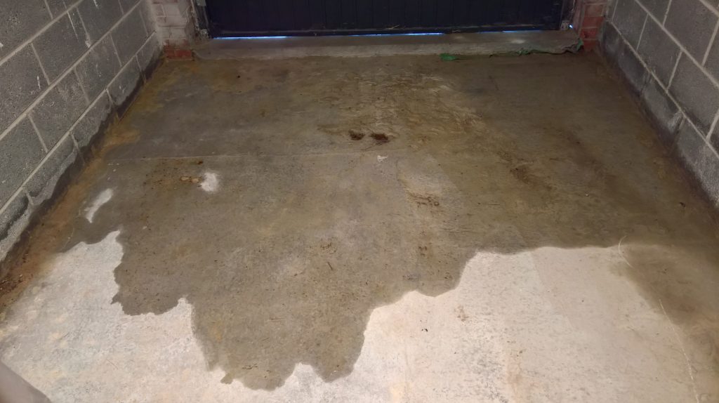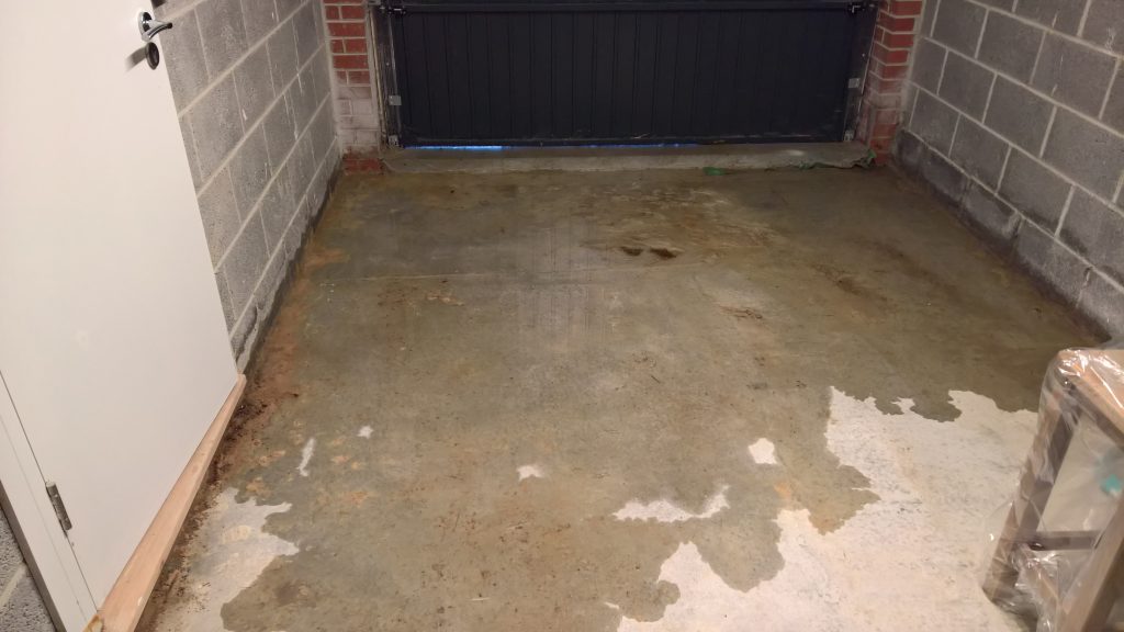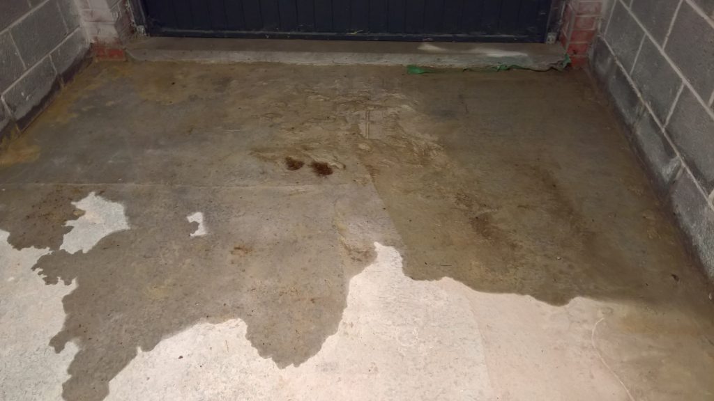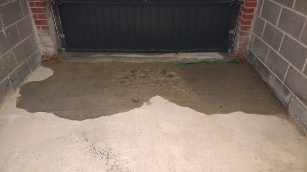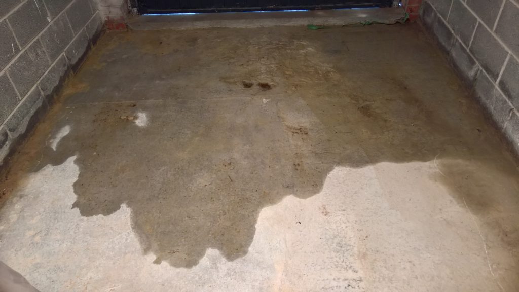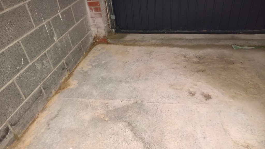 Ingress around/under screed and green plastic in the garage is drying back.