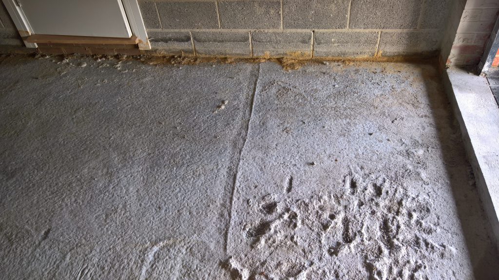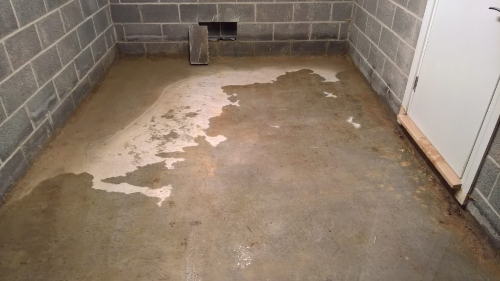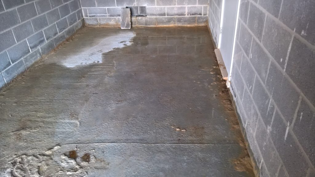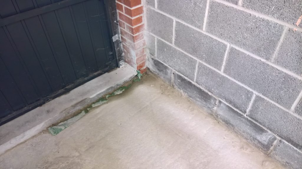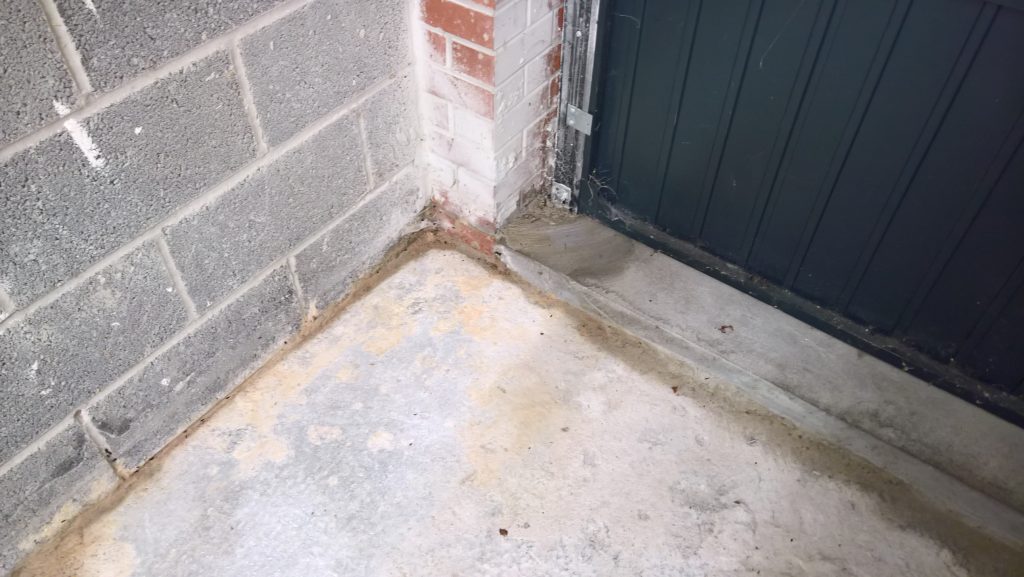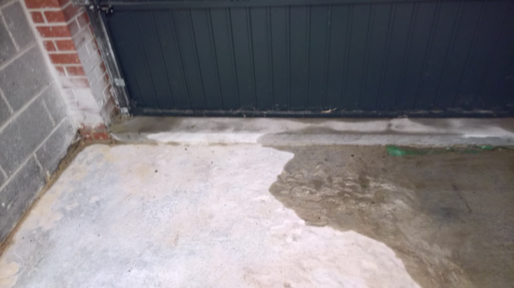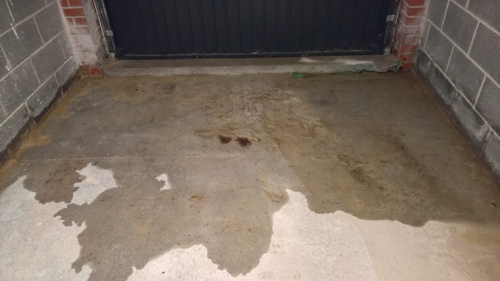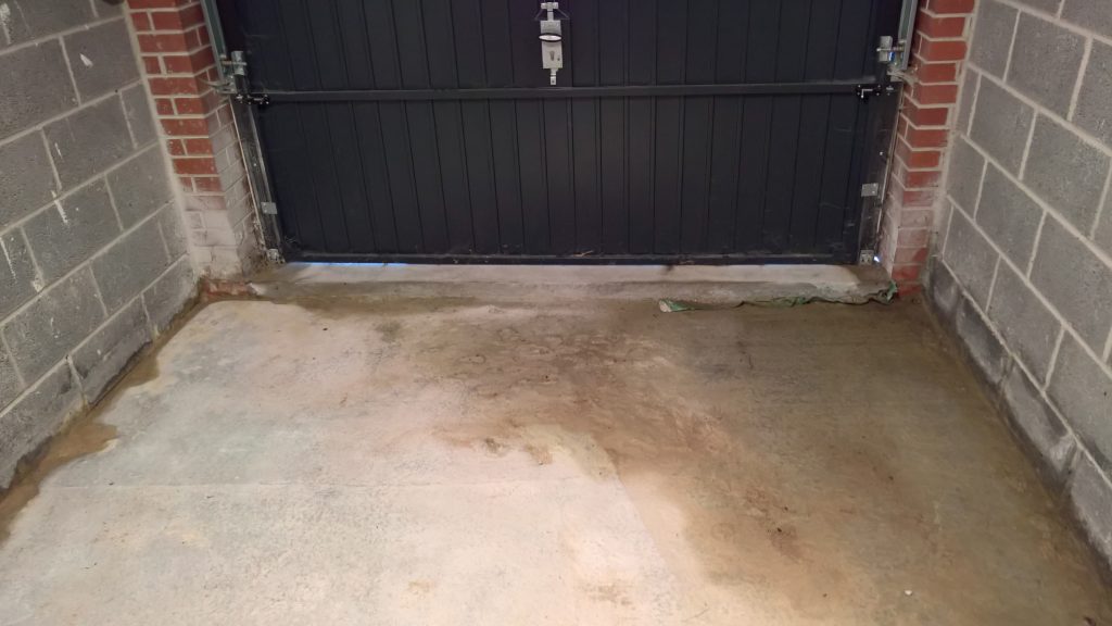 Ingress around/under screed and green plastic in the garage is drying back.