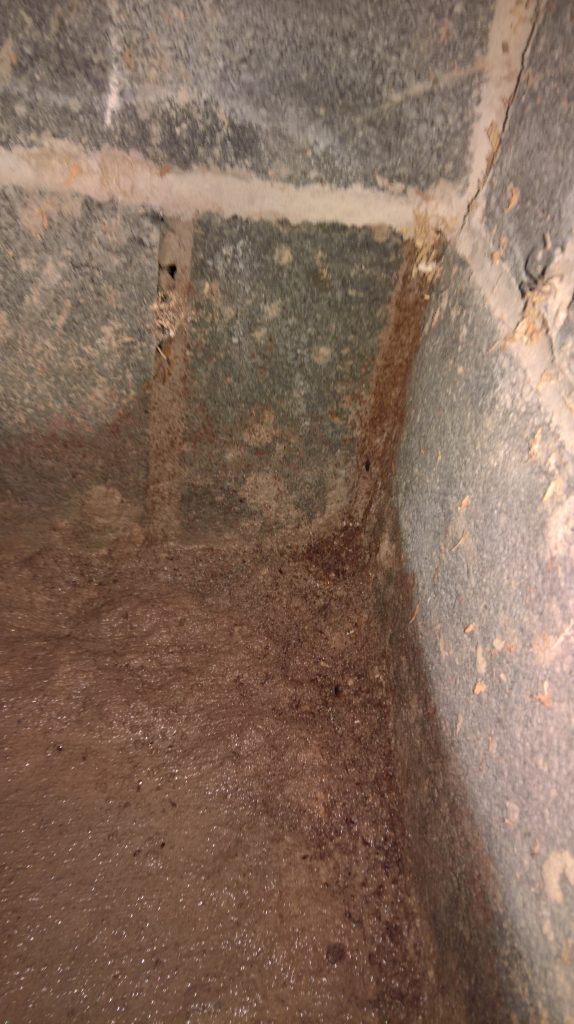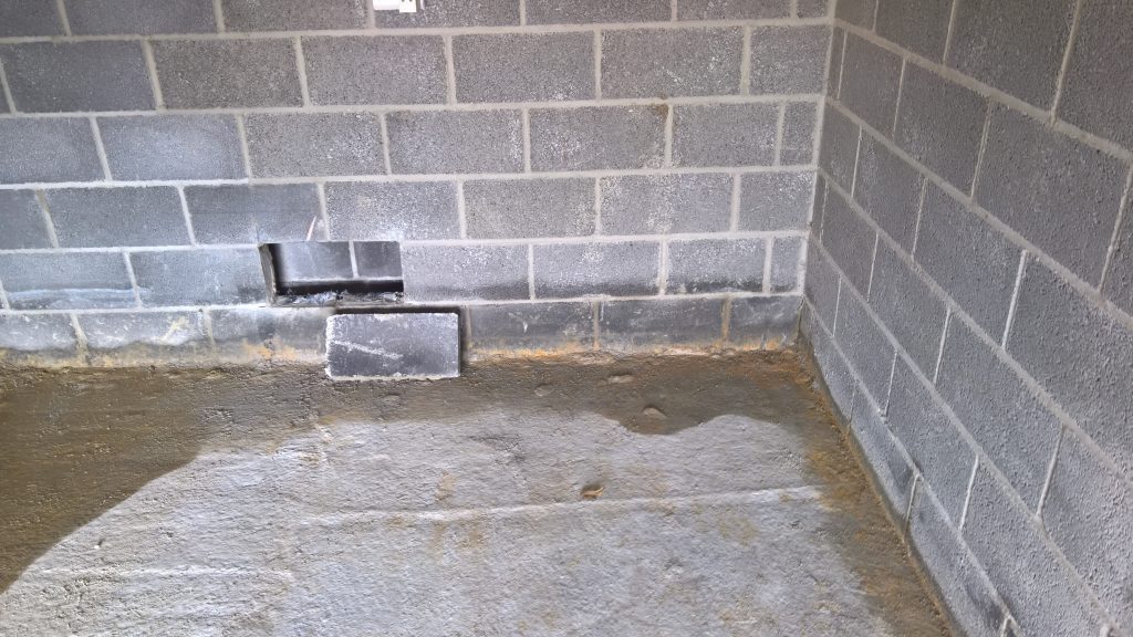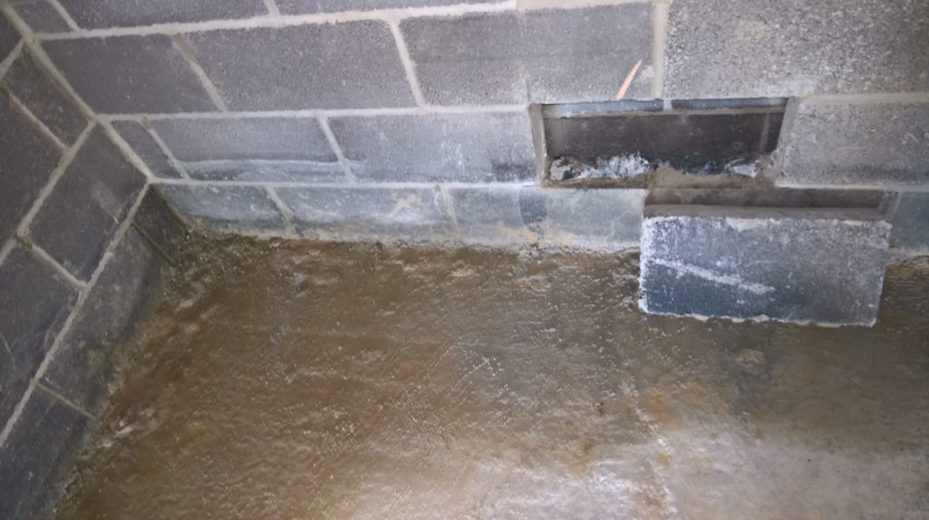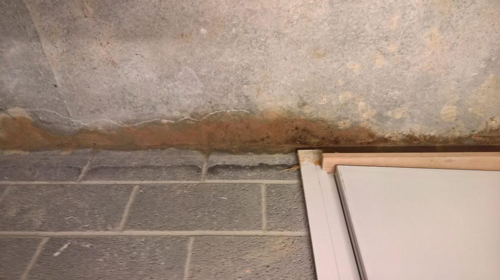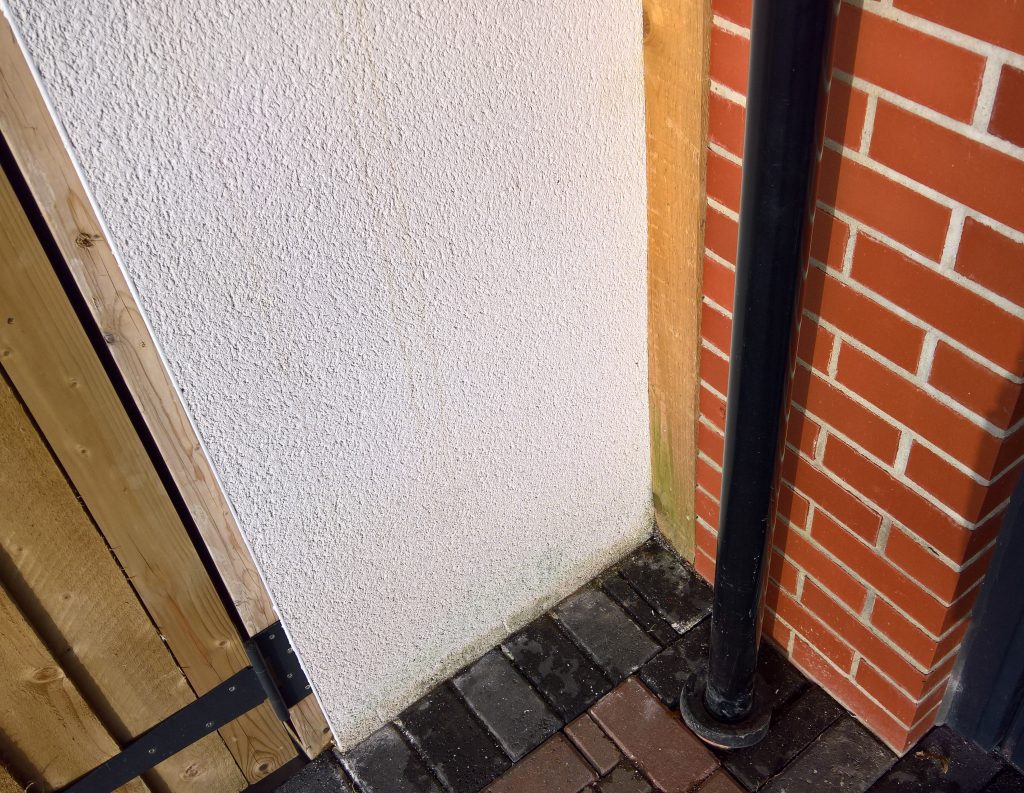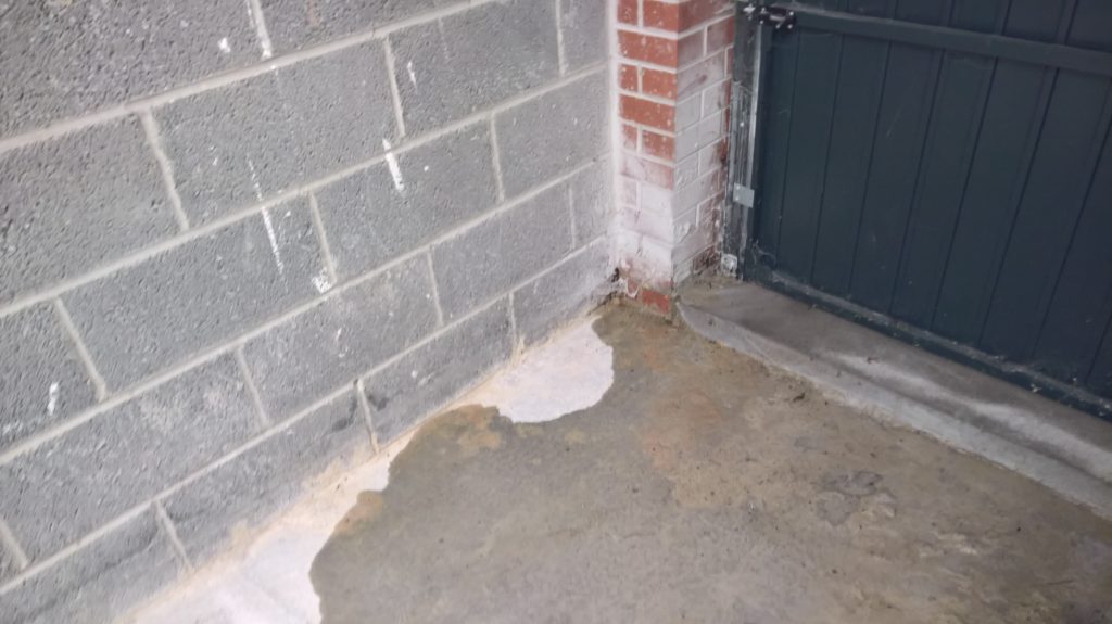 Image above showing wet blocks around downpipe outside.