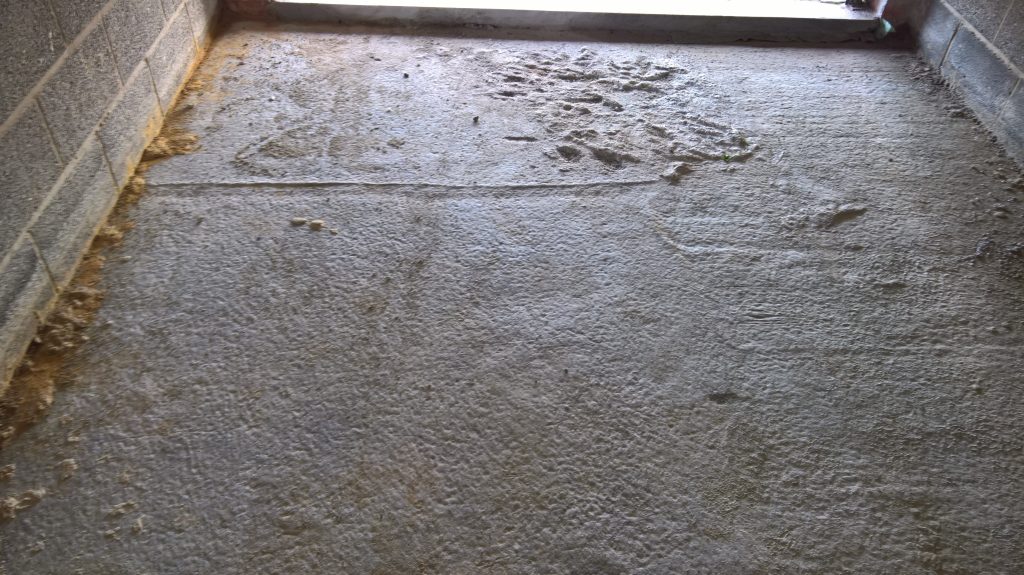 …without the tarp outside, the garage floor would be sodden this morning; with the screed on top the water would be permeating through to the house.