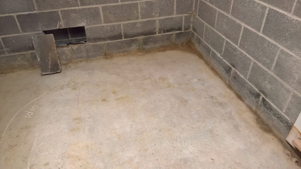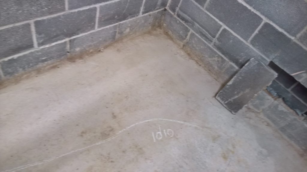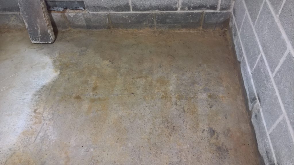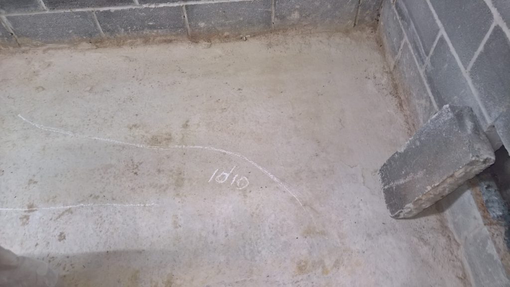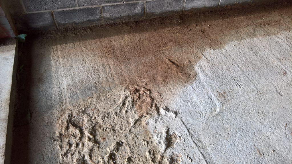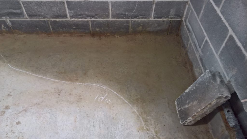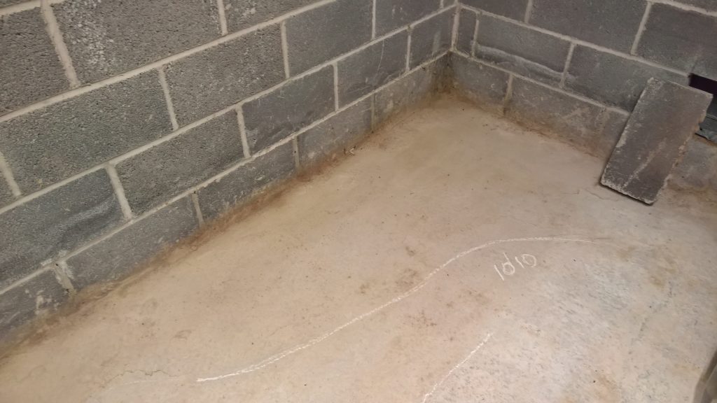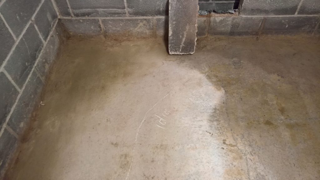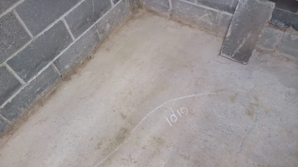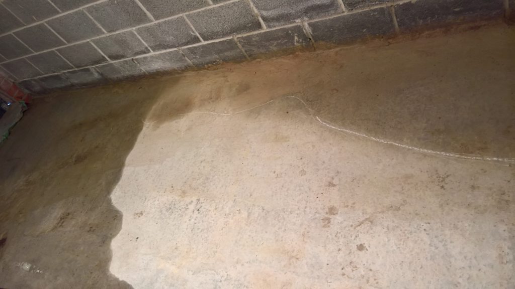 Decided to keep monitoring the situation… little change in damp outline on garage floor. Marked with chalk.