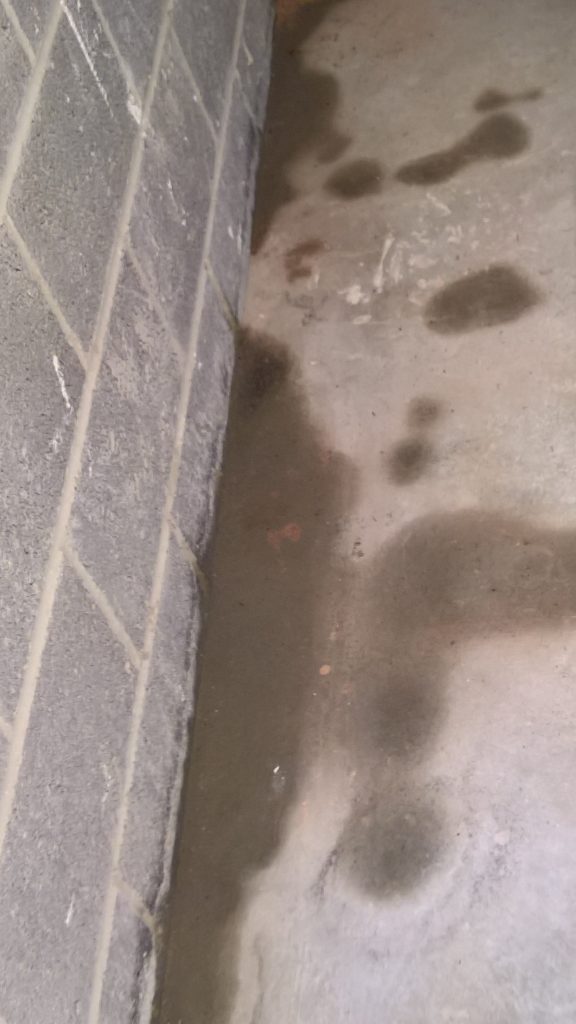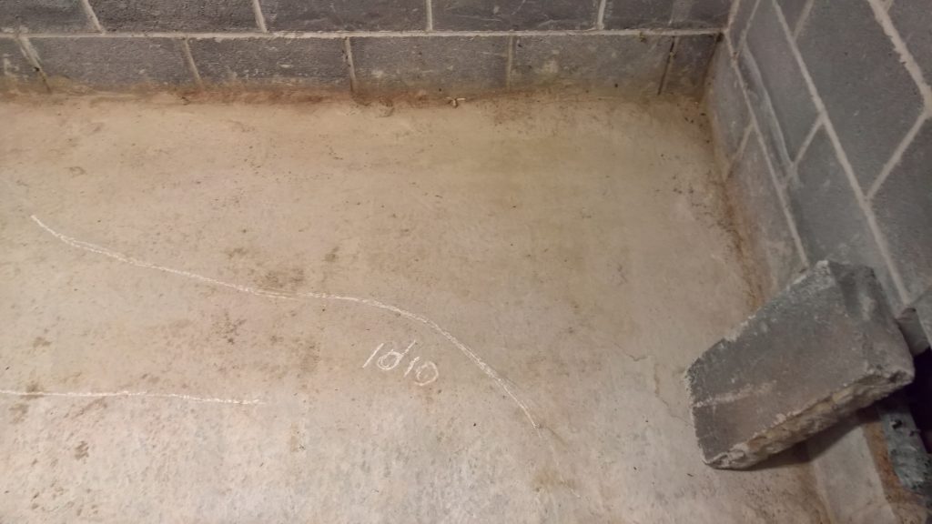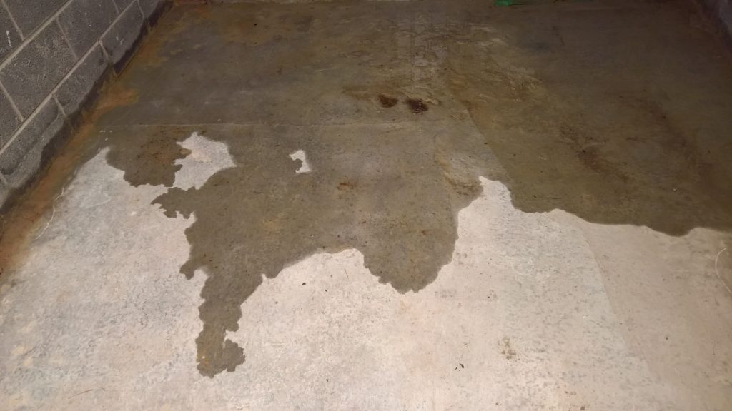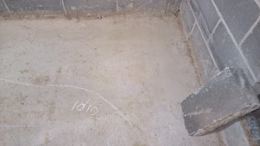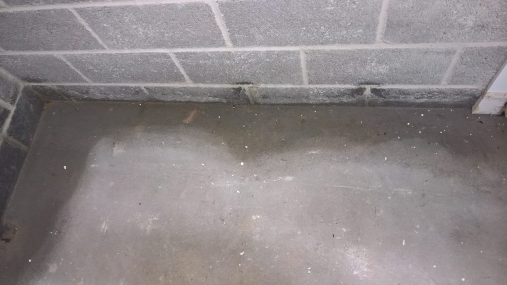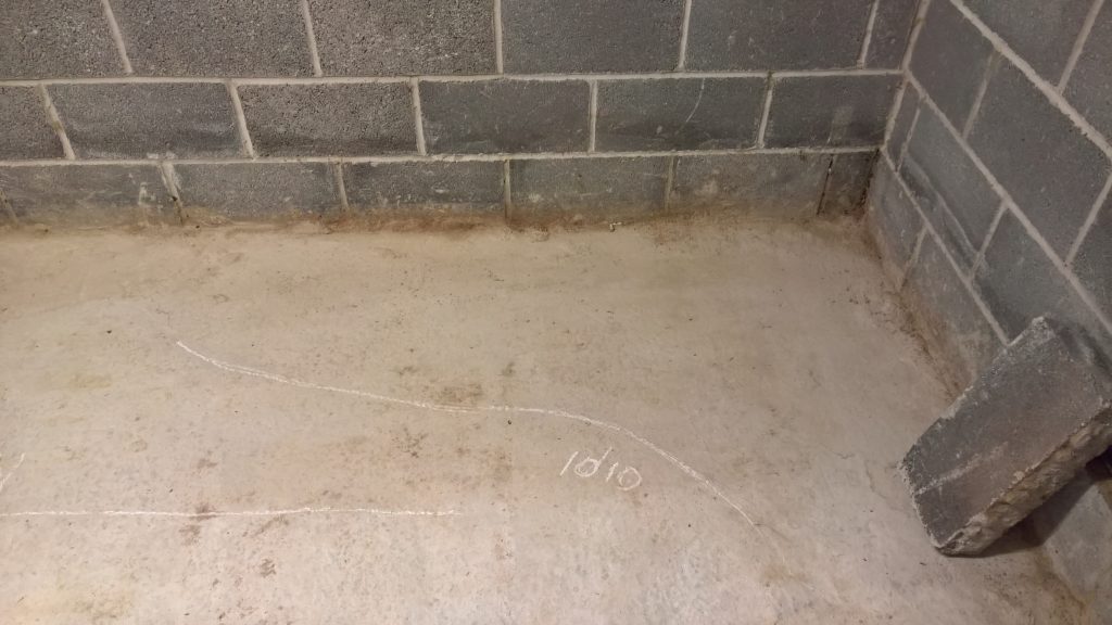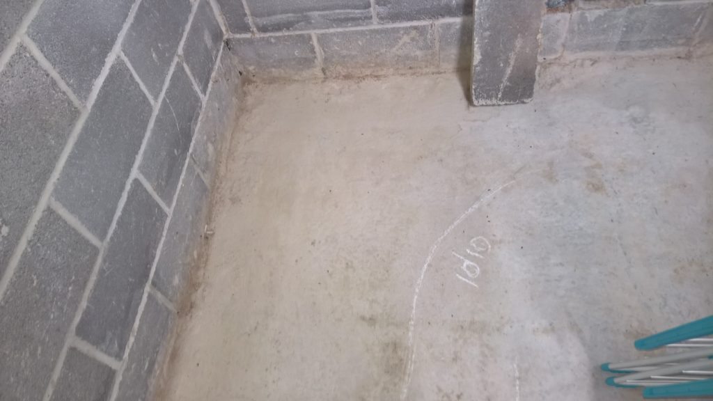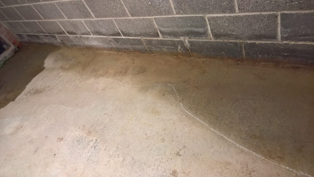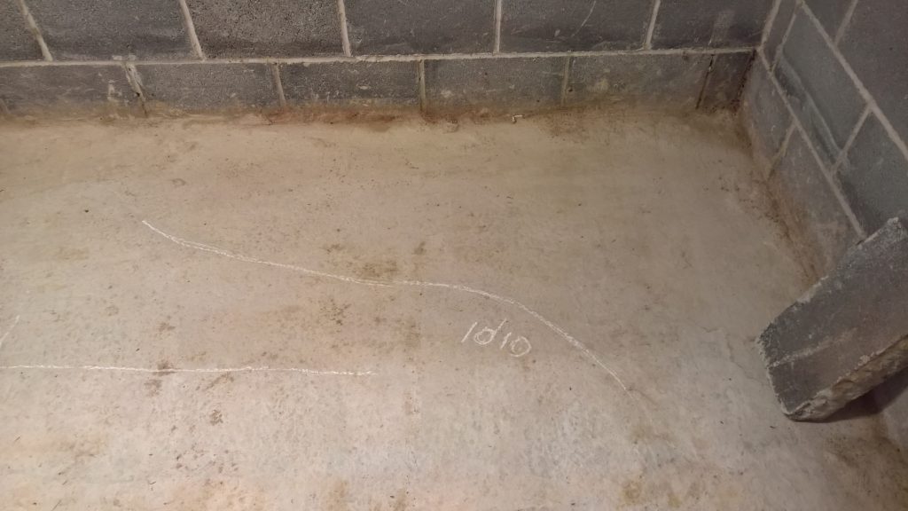 Decided to keep monitoring the situation… little change in damp outline on garage floor. Marked with chalk.