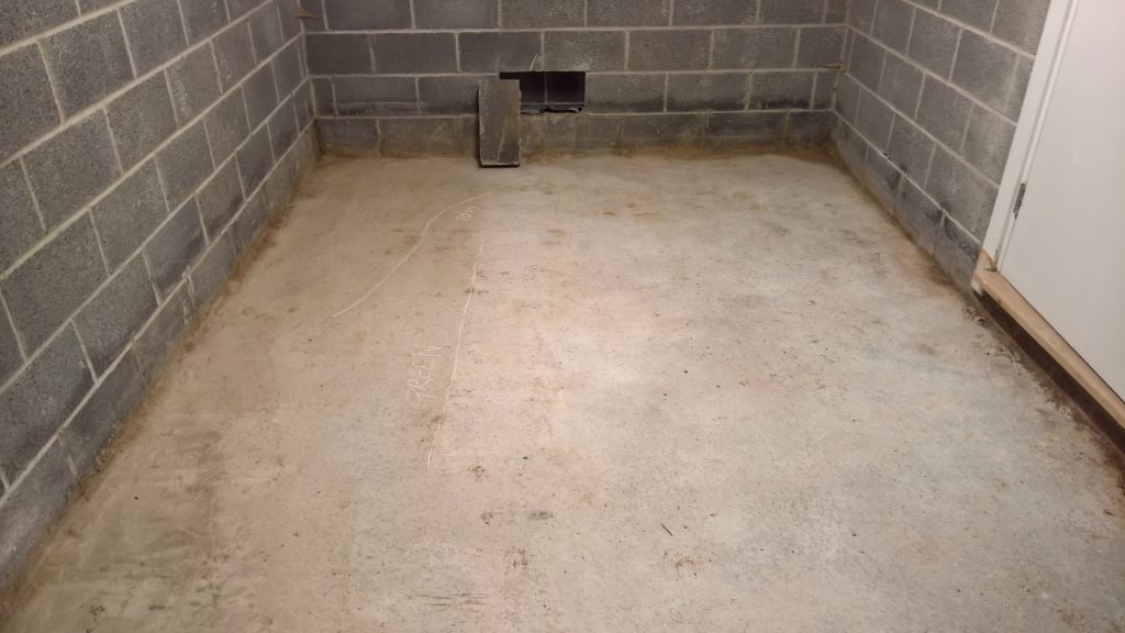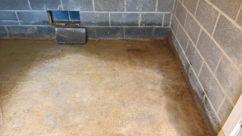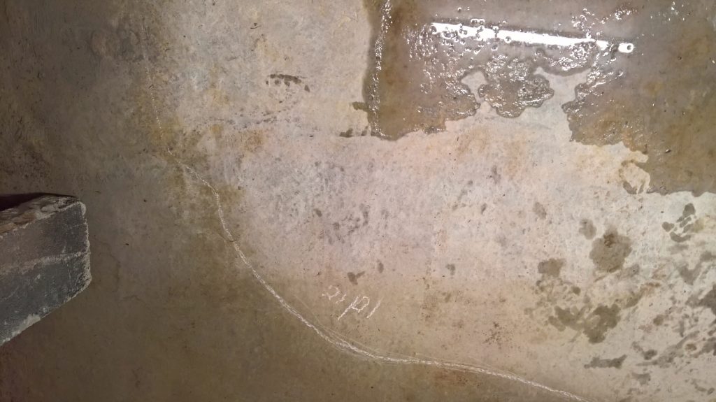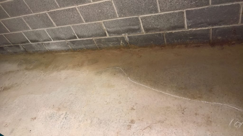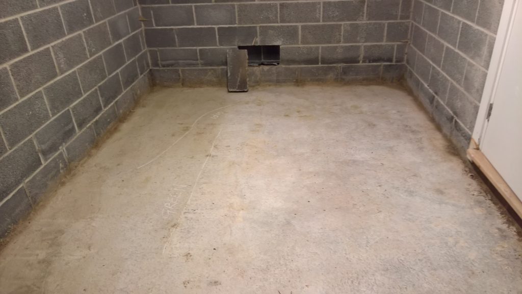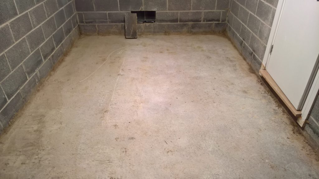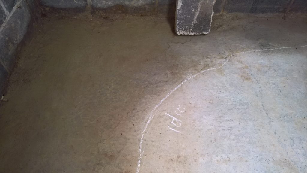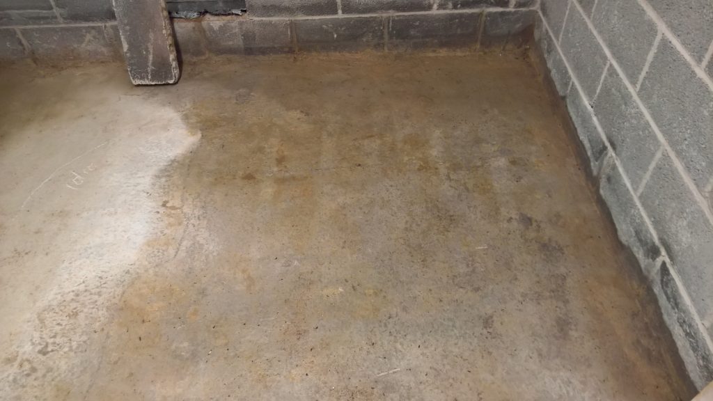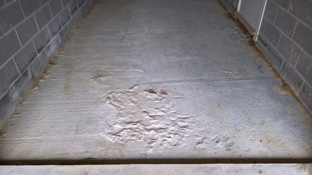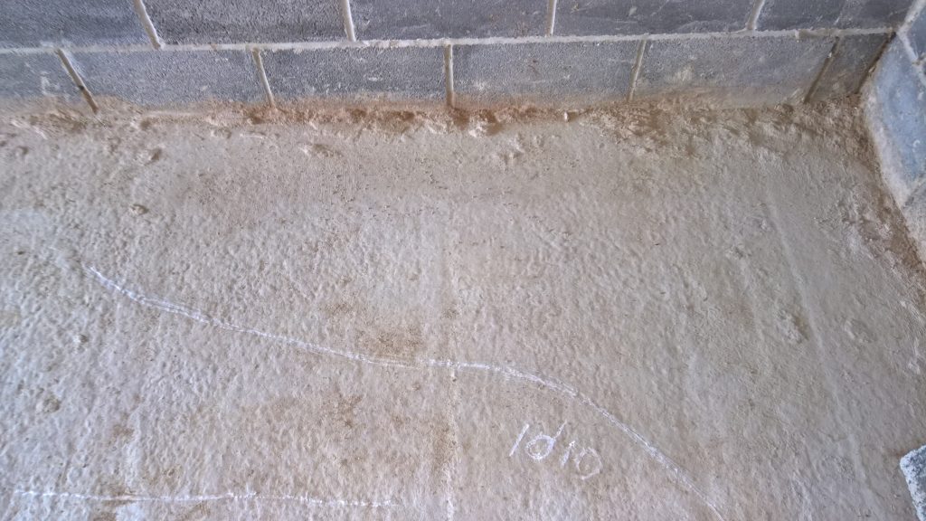 Decided to keep monitoring the situation… little change in damp outline on garage floor. Marked with chalk.
