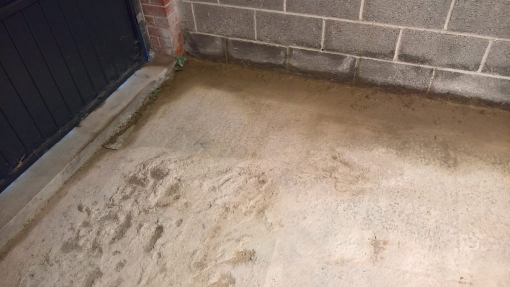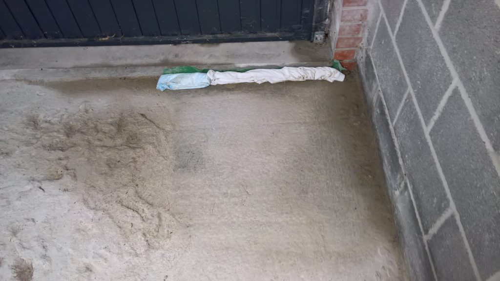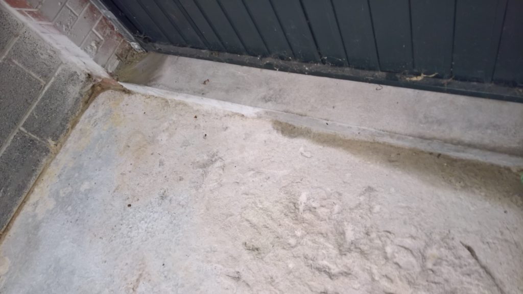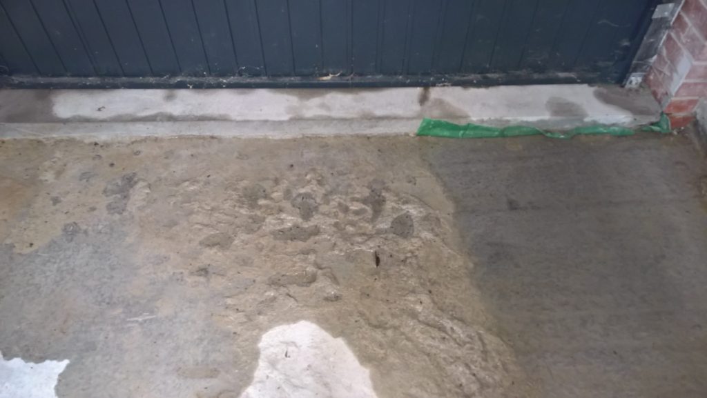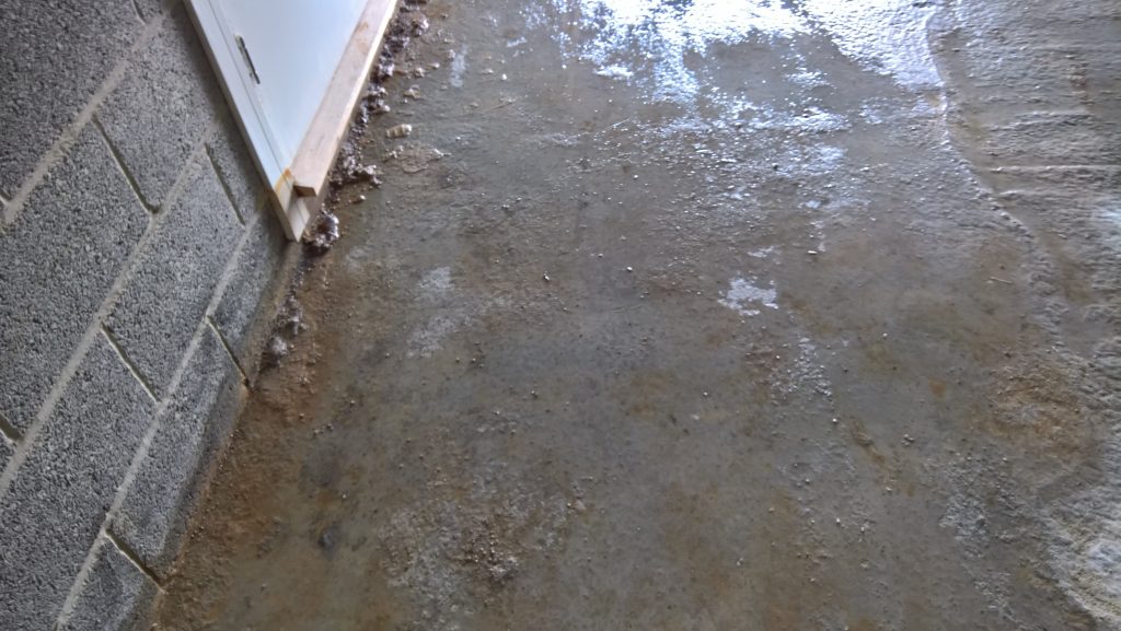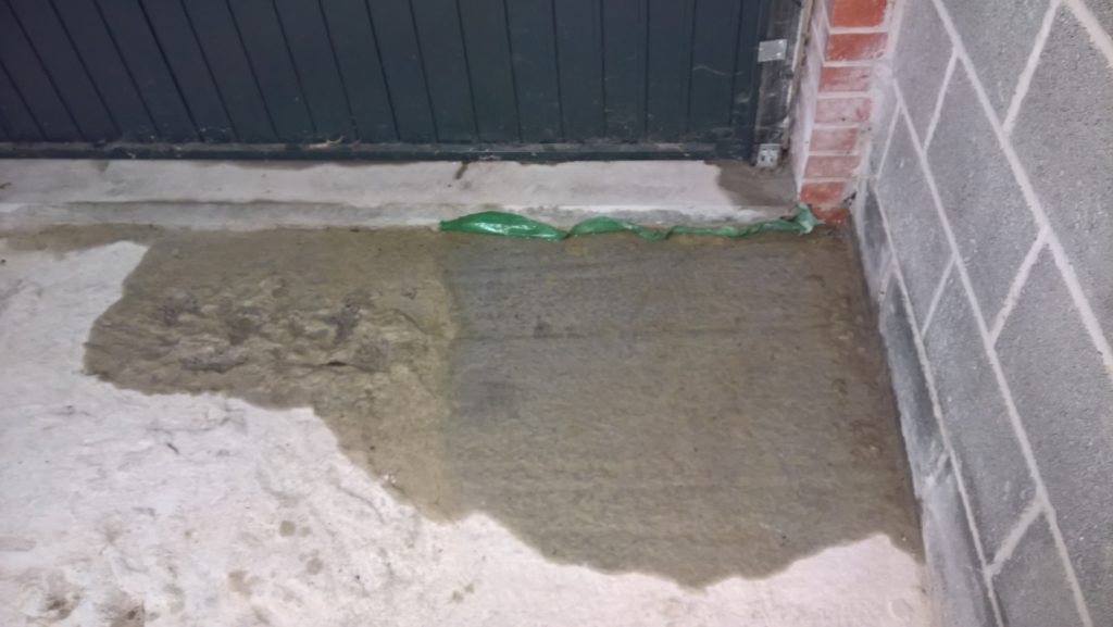Rain overnight and some water has crept under the remaining screed and into the garage…