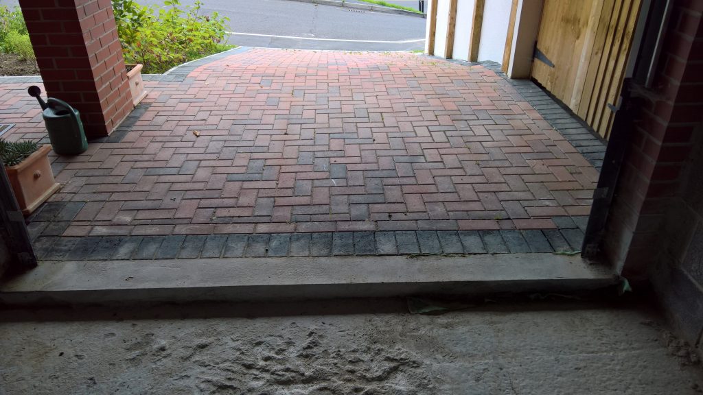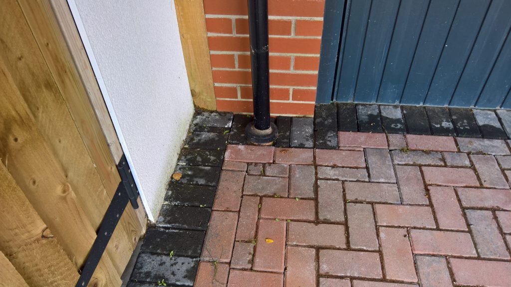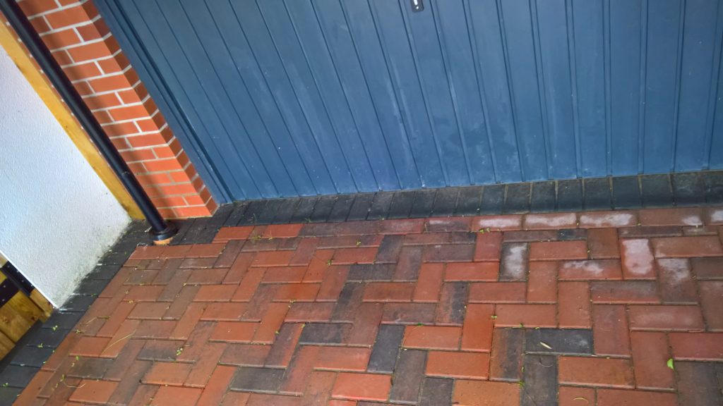 There is a lot of pooling water on the drive brickwork. To the left in the image above.