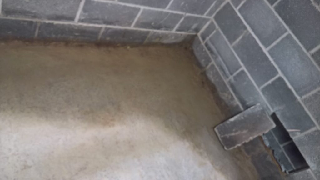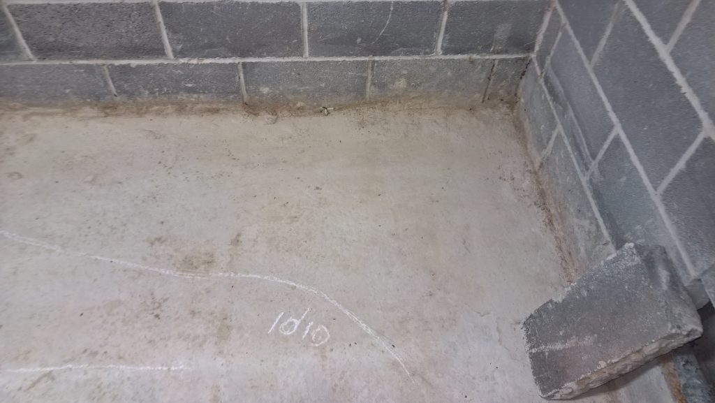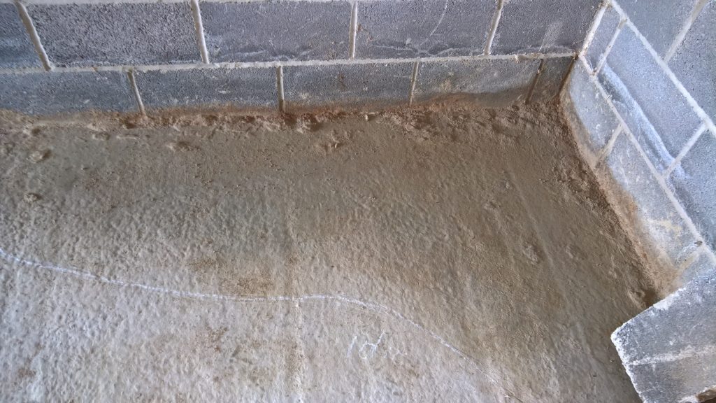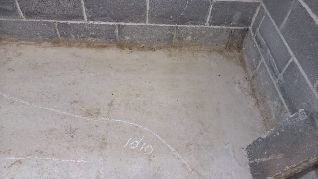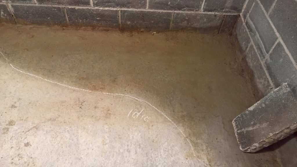 Above and below the remaining apron of screed is dry with evidence of water passing under it…more than I would like. It’s difficult keeping the water out… Hoping for a dry spell 🙂