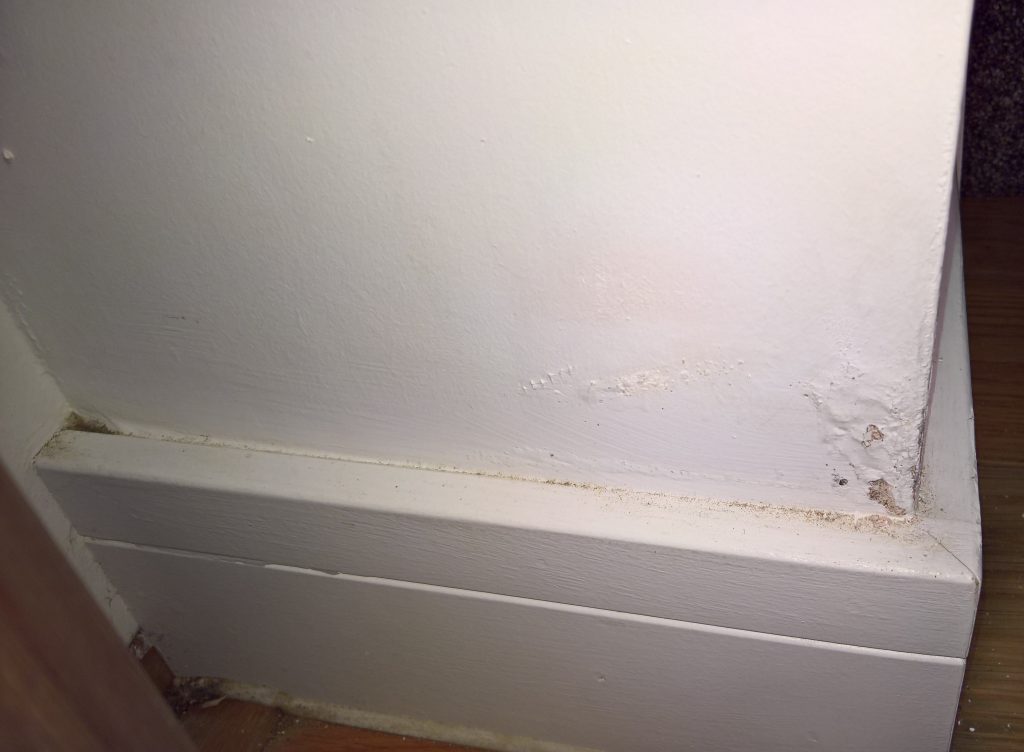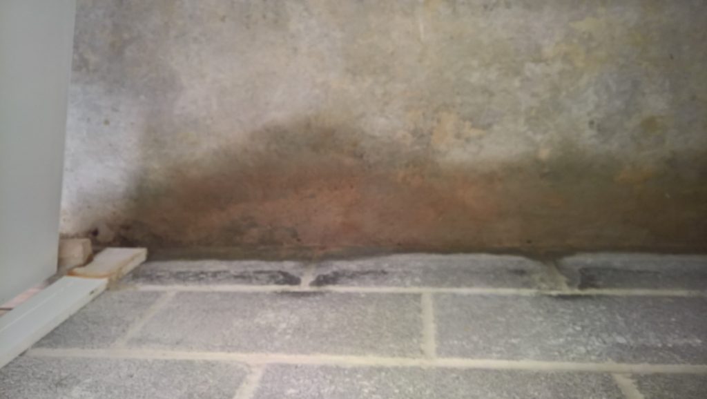 Damp meter readings are high along the left inside wall into the habitable area… image below.