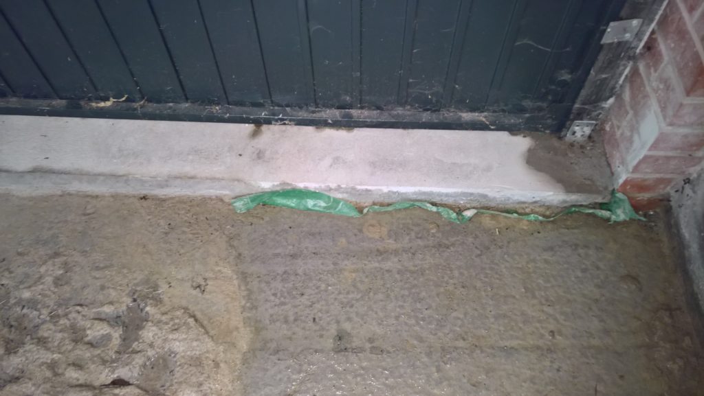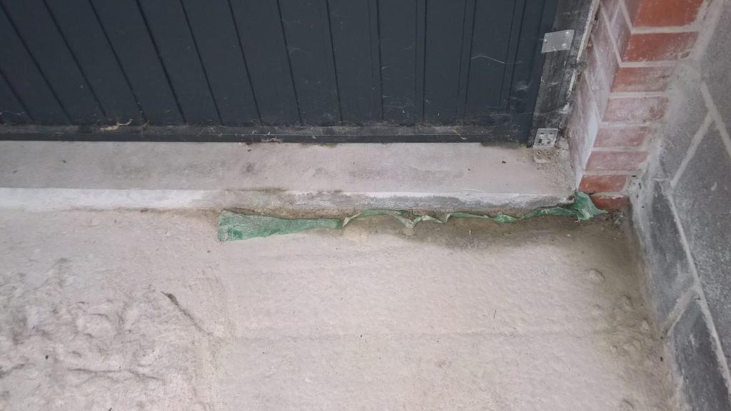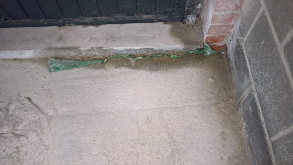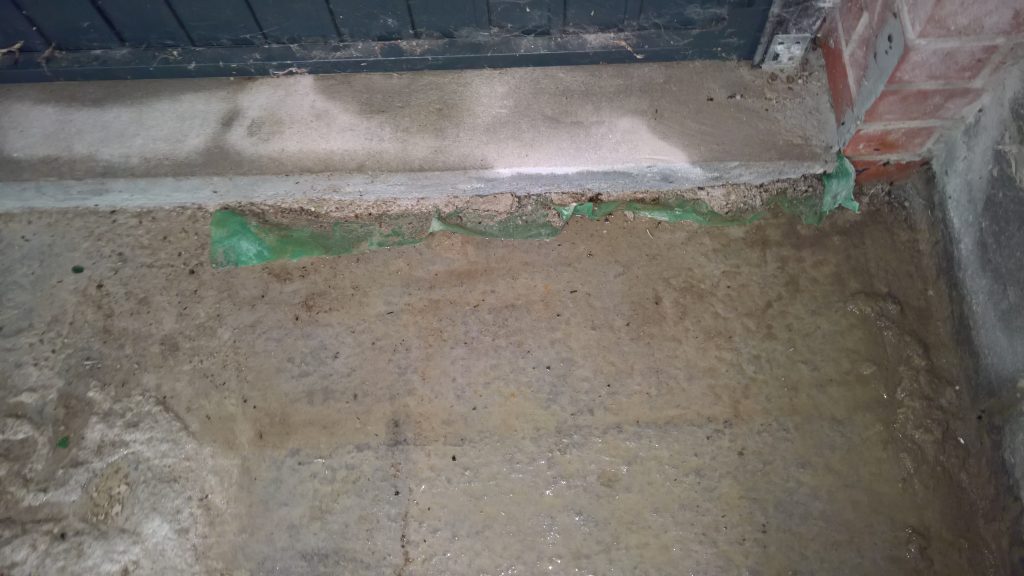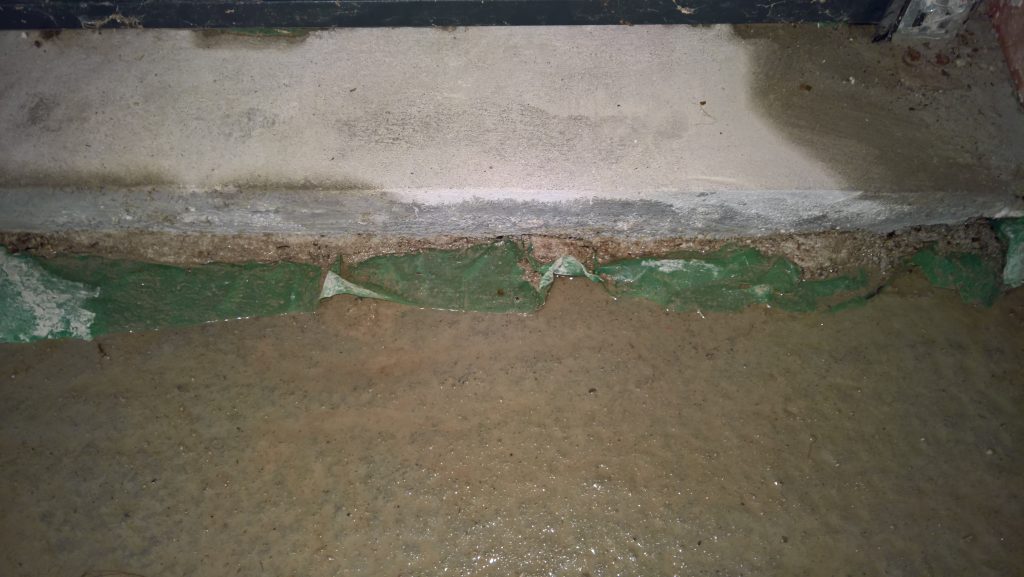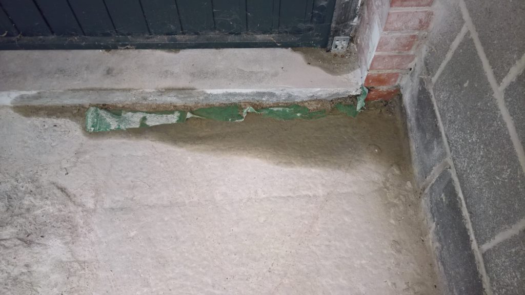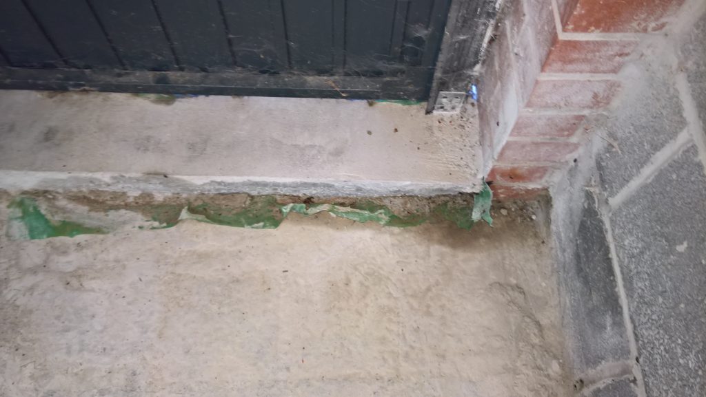 as can be seen below the water ingress is not under the door…but under the remnants of green plastic and screed.