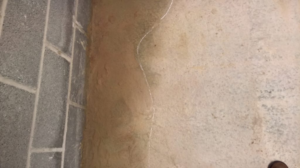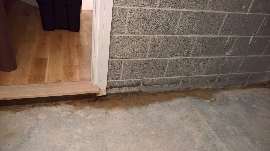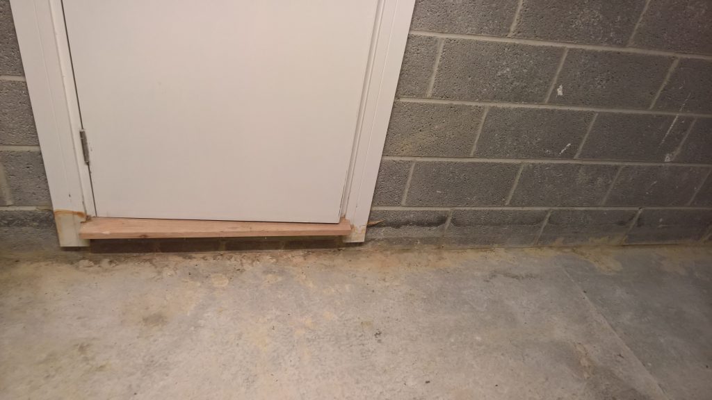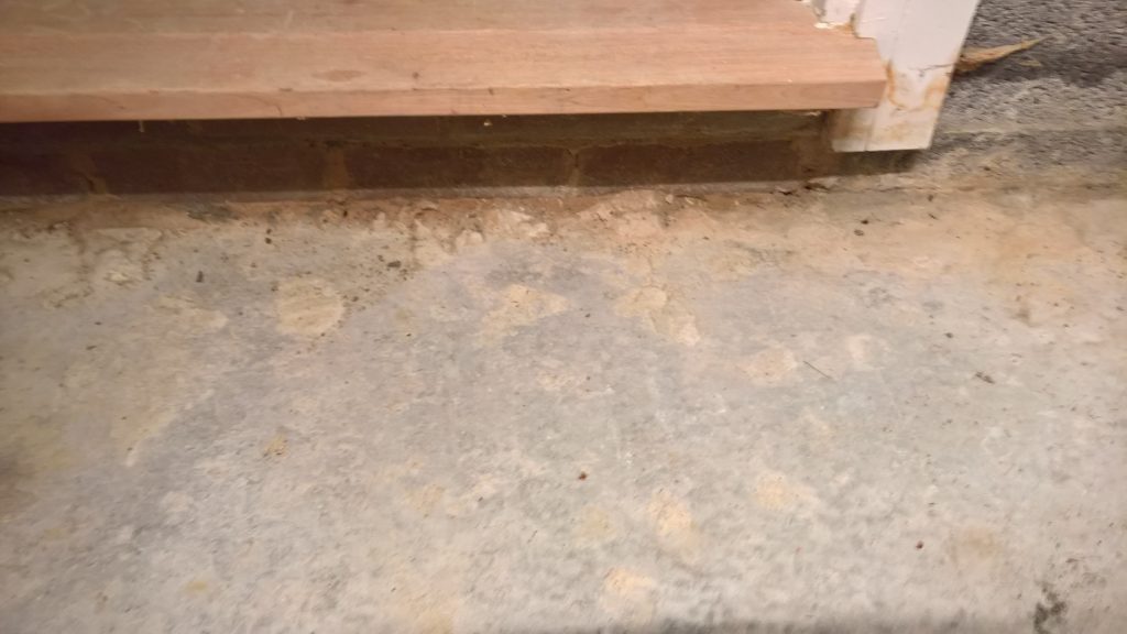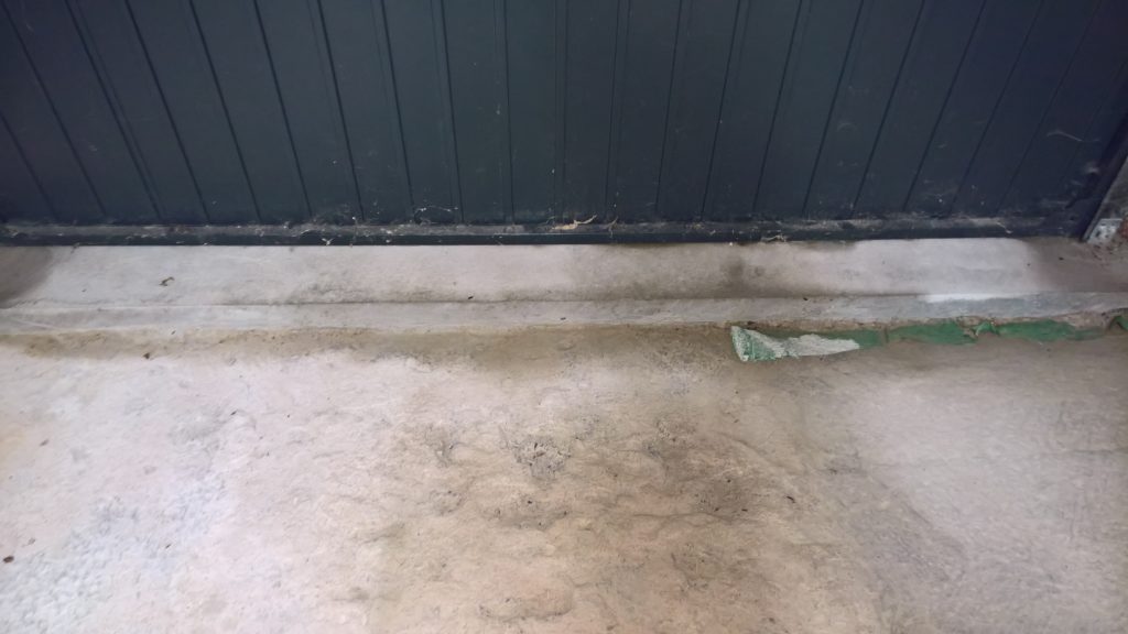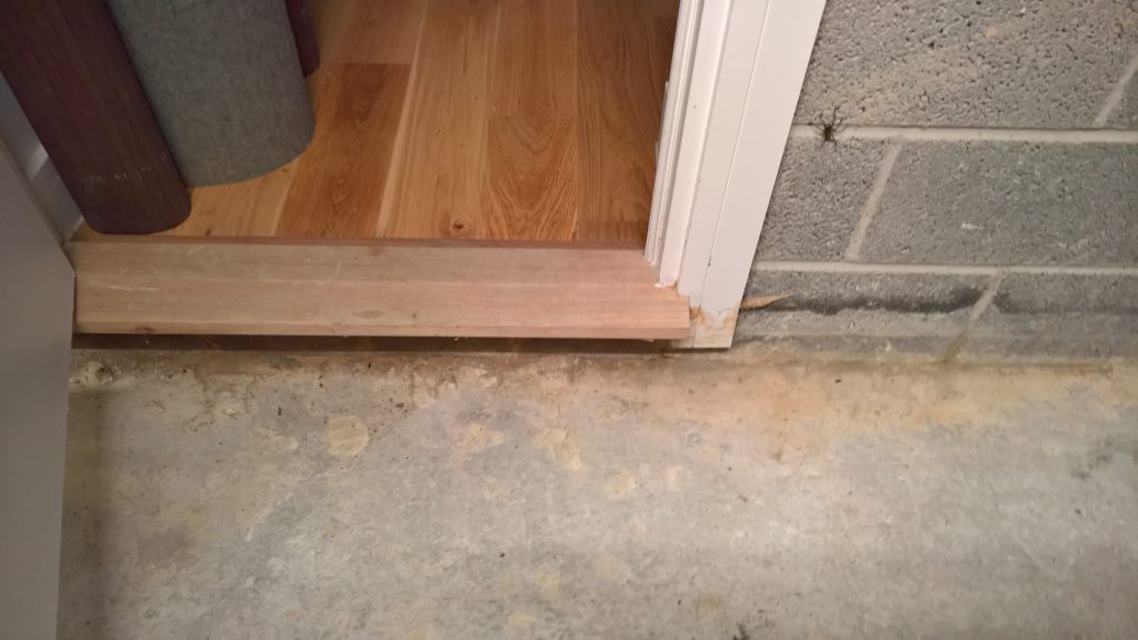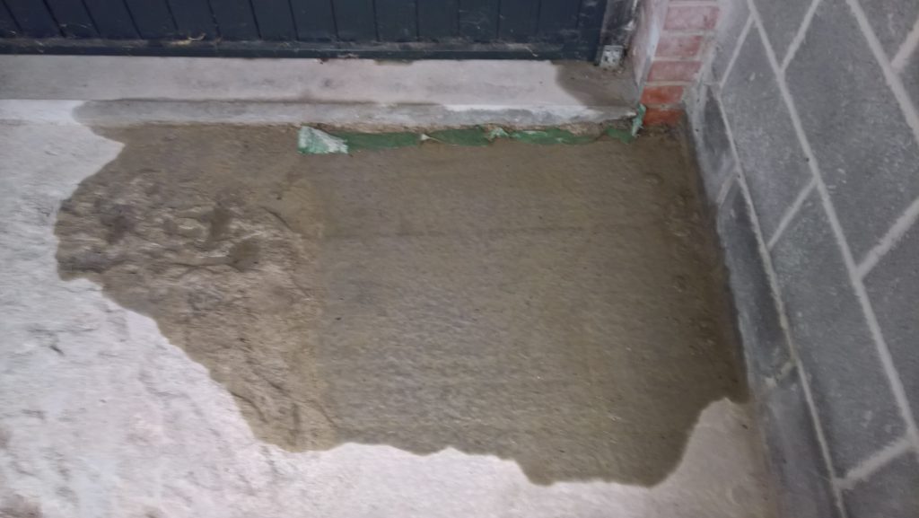 as can be seen below the water ingress is not under the door…but under the remnants of green plastic and screed.