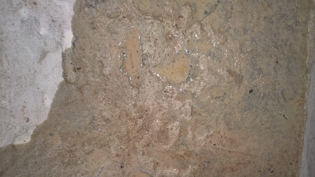 I have swept away a lot of standing water this am and I dread to think where this water would go without intervention…(which is what has happened over the period since the house was built; at least a year.