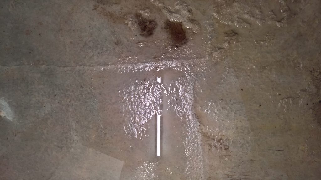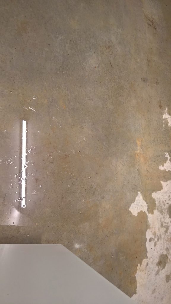 The image above shows the remaining screed which is “relatively” dry…the water is passing under the remaining screed and green plastic.