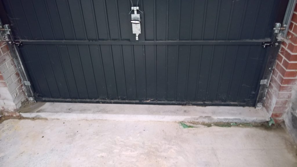After yet (five in total) another survey the surveyor is advising that a “robust” barrier across the forecourt in front of the garage be put in place.
