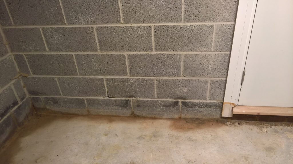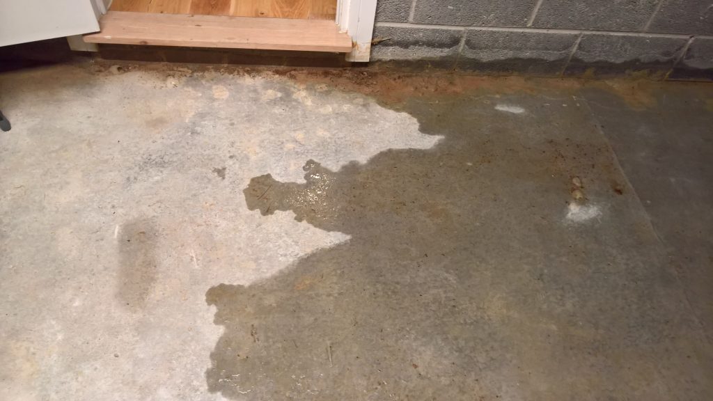 Inside the garage adjascent to the outside down pipe is very wet. Not all the wetness is explained by poor/no weatherstrip on bottom of garage door…