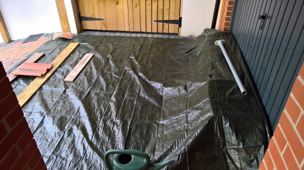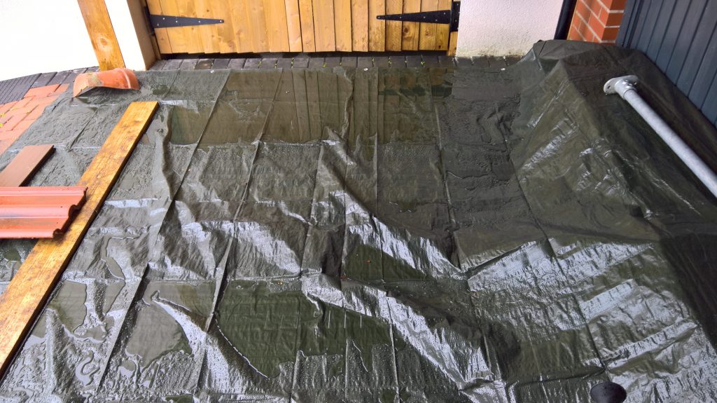 As predicted lots of rain overnight and a lot of wet in the garage, ingress under door quite bad and the green membrane area is sodden again…