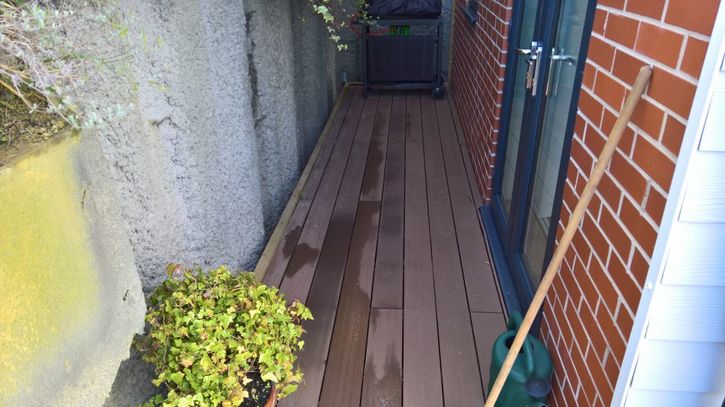Image below showing unrendered wall aspect beneath the balcony after the decking removal on 4th December ’23