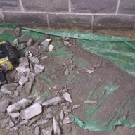 The image above shows the remaining screed which is “relatively” dry…the water is passing under the remaining screed and green plastic.