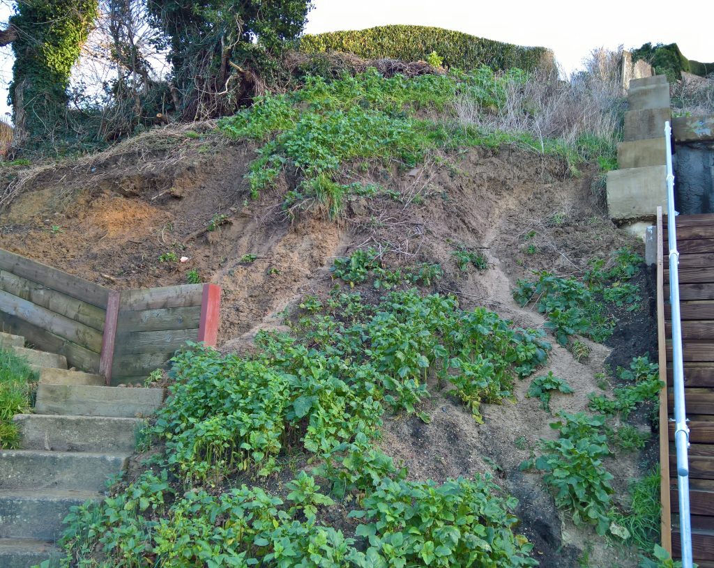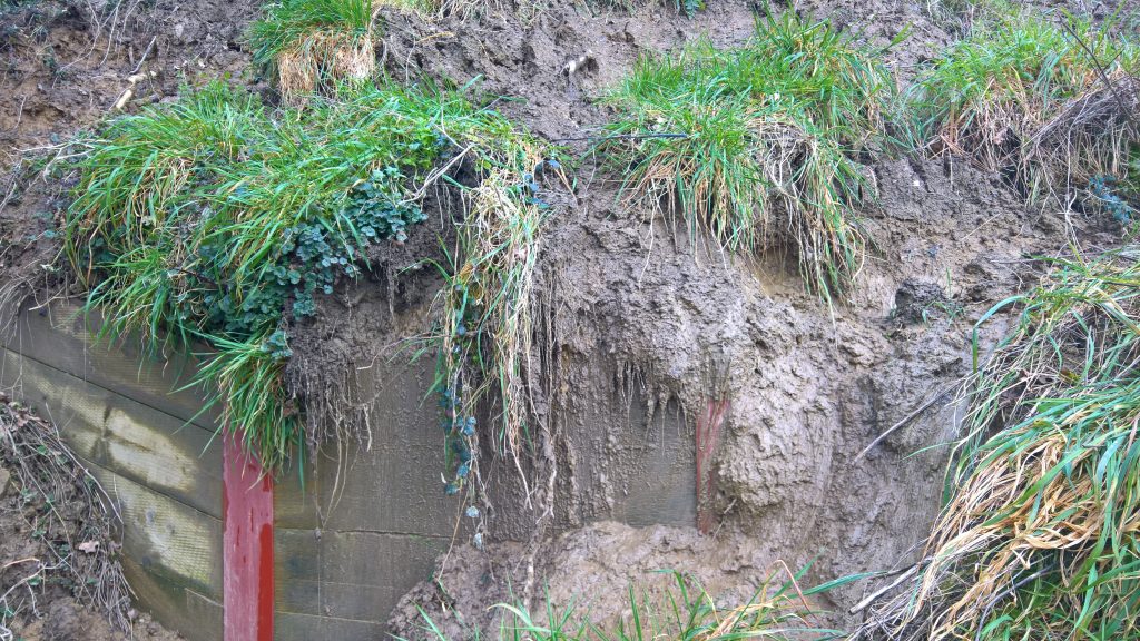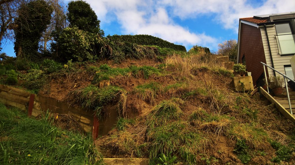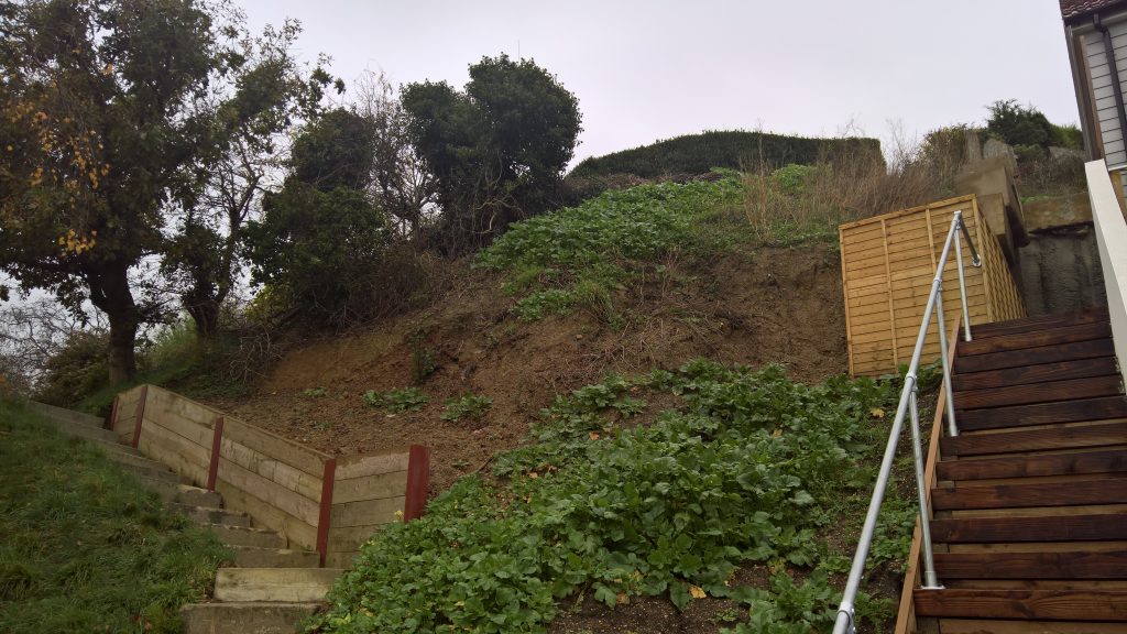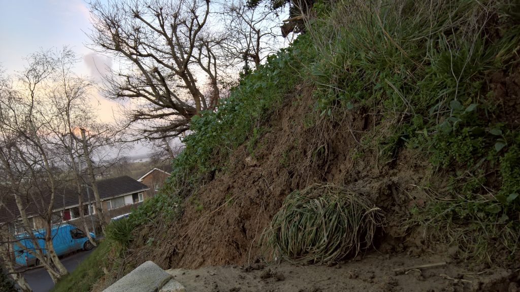 Really, what should have happened at the end of the build was the installation of a series of Gabbion cages to deal with the Lias clay hillside. Taking a huge slice out of a hill with natural springs bubbling throughout, was surely going to be a problem, and so it has proved.