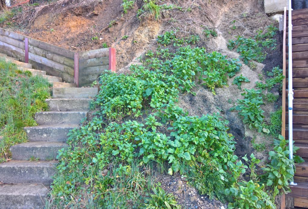 As of October 2023 the developer still has not remedied the situation and the weight of clay and soil is putting pressure on the outside stairs which is, in turn is affecting the wall…a crack is visible…