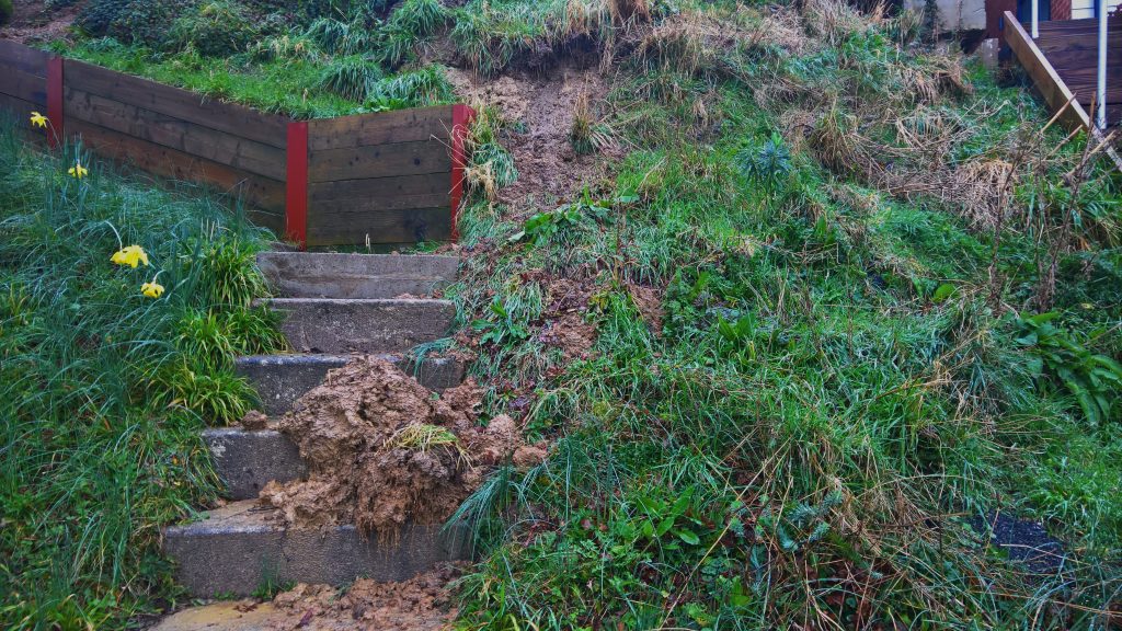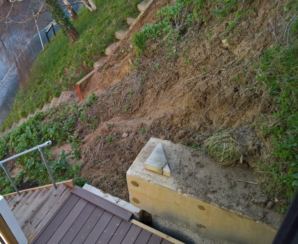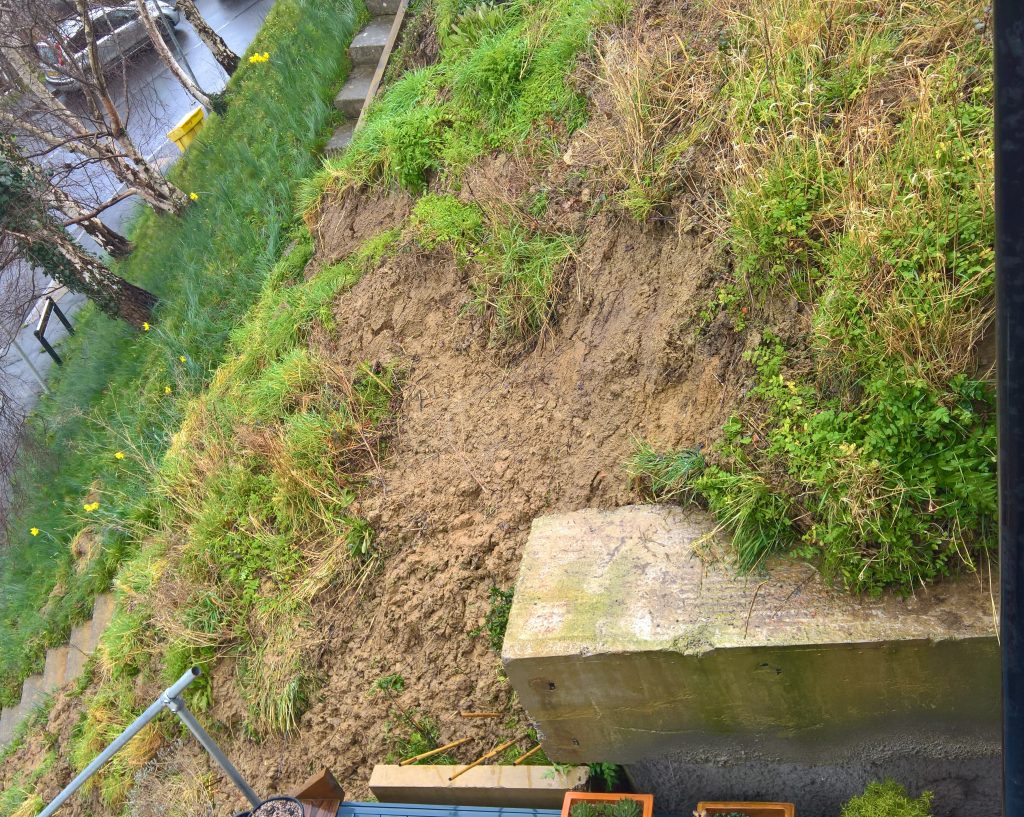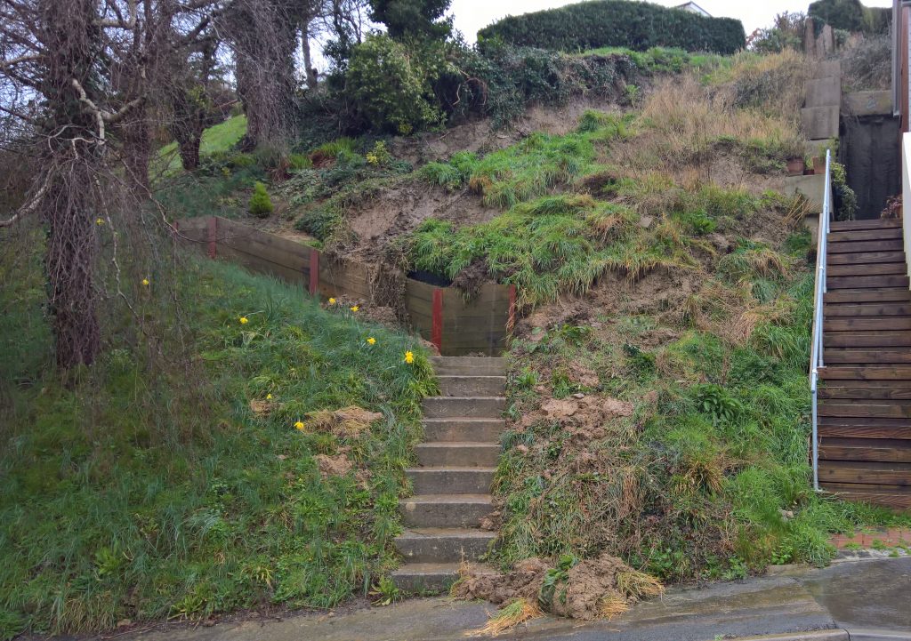 The image below showing a further overnight mudslide along the side of my property.