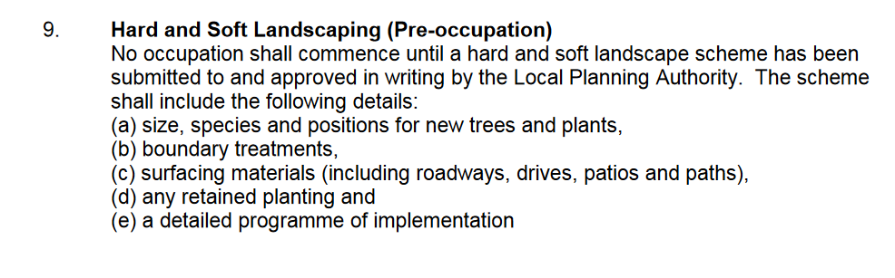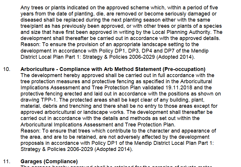 The two images below are of conditions 9 and 10 from the granted planning permissions and which indicate the devlopers resposibilities regarding this land.